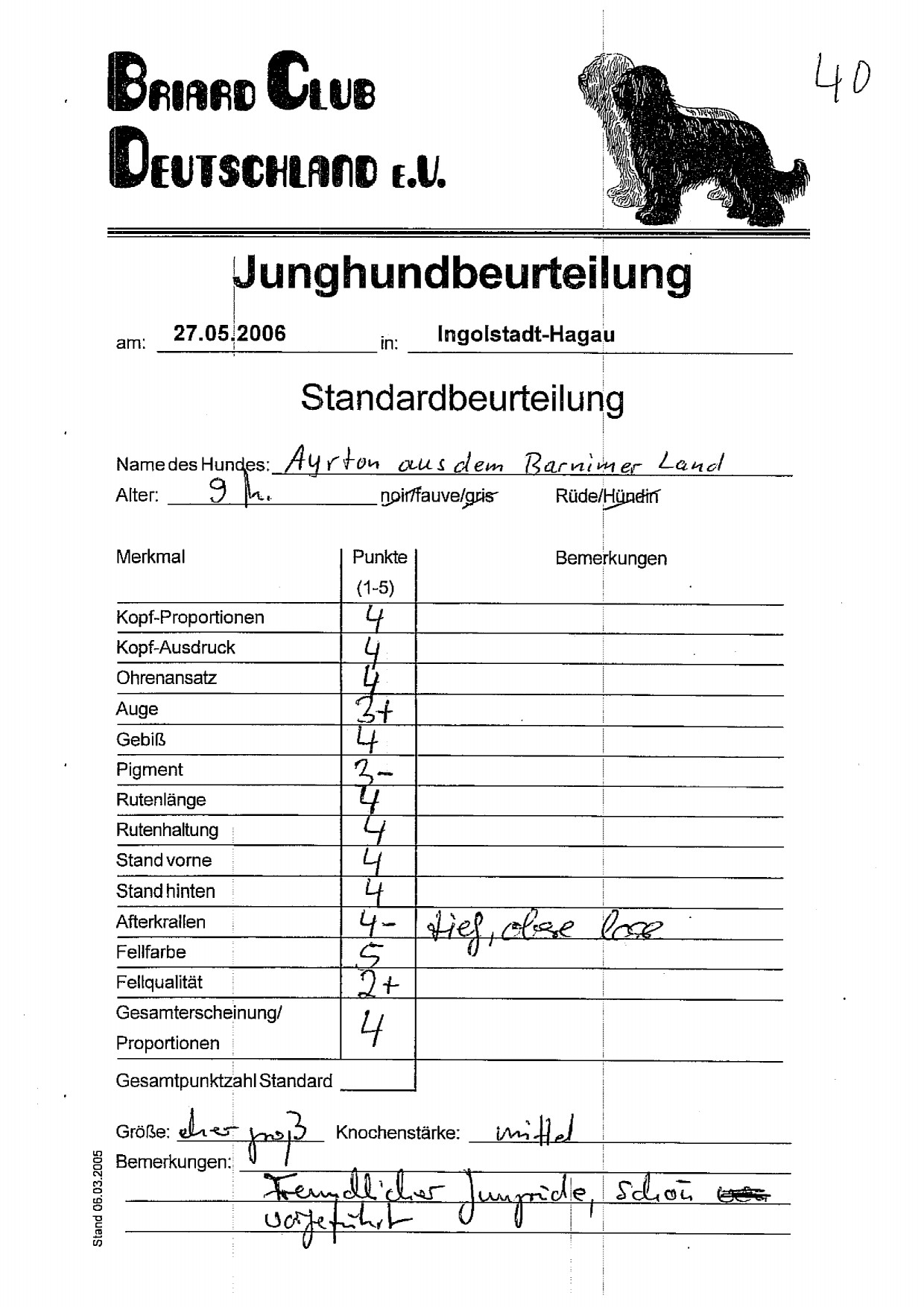 Ayrton war bei der Junghundbeurteilung, nicht bei der CAC. Zur Juhu werden keine V oder VV vergeben.