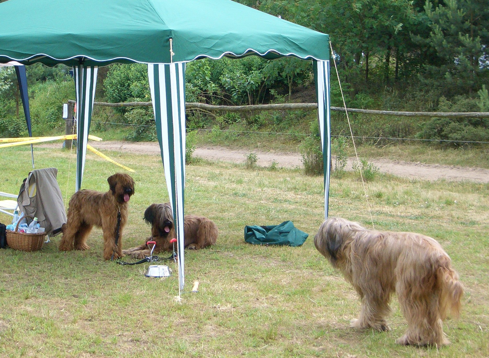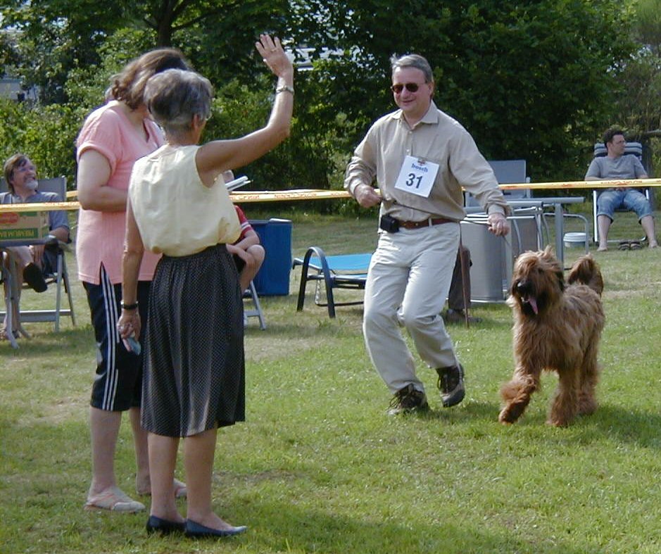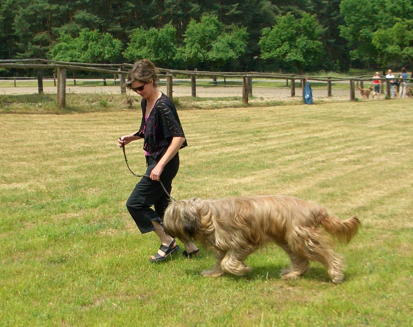 Das Laufen allein funktionierte ja ganz leidlich, doch das Laufen in der Gruppe haben wir lieber garnicht erst photographiert. Das Ziel der Übung hieß dann für Karenina, mal diesen, mal jenen anderen Briard im Ring zu erreichen.