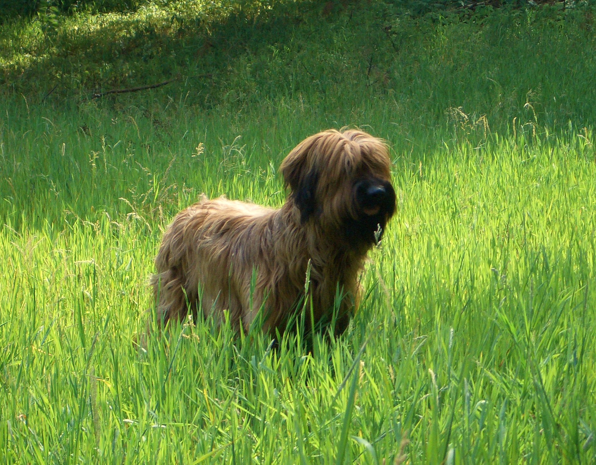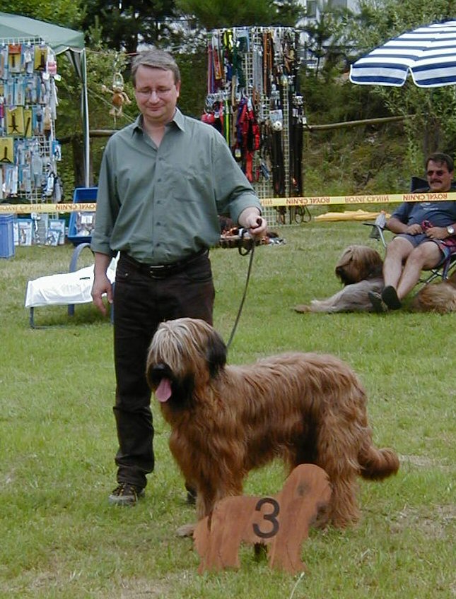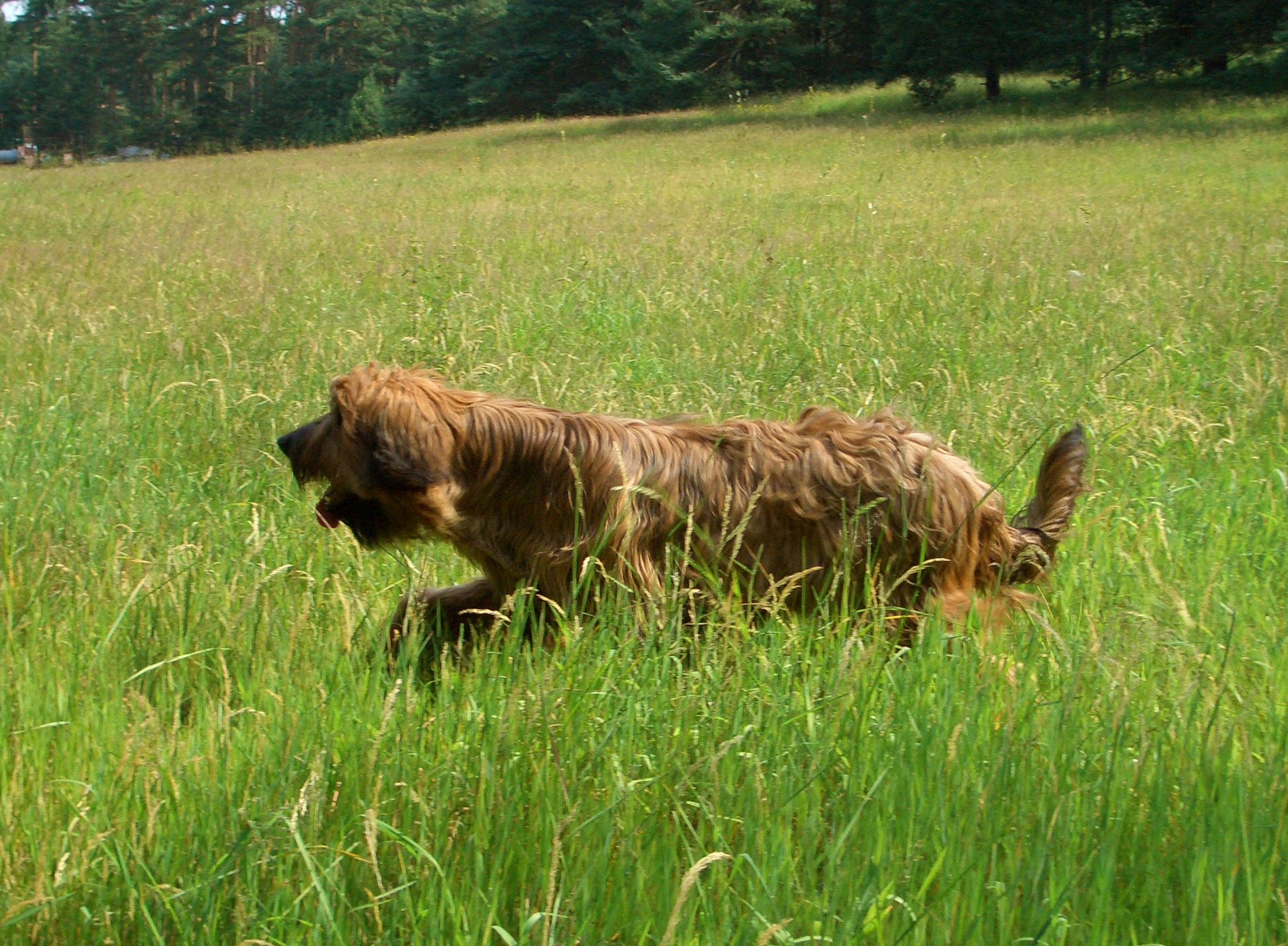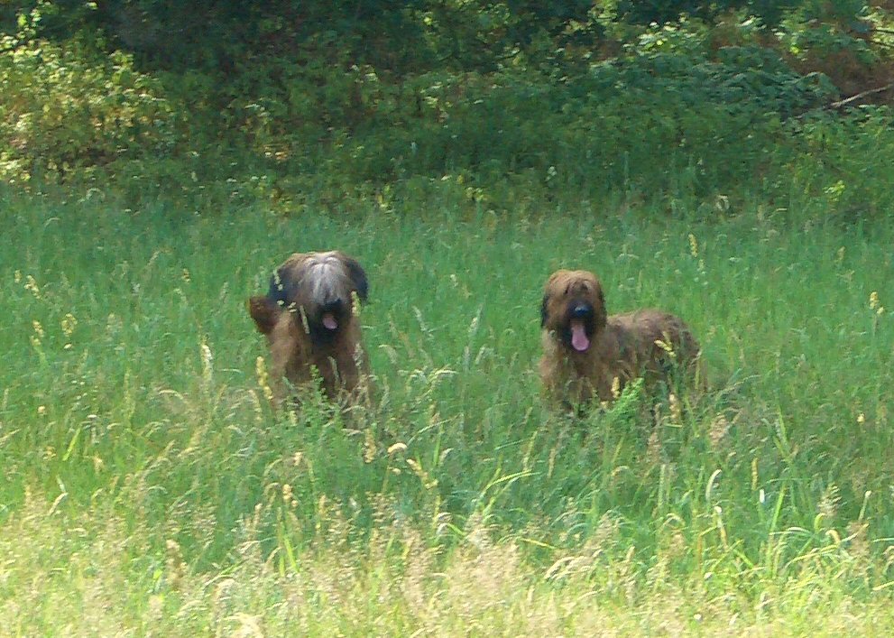 Das Laufen allein funktionierte ja ganz leidlich, doch das Laufen in der Gruppe haben wir lieber garnicht erst photographiert. Das Ziel der Übung hieß dann für Karenina, mal diesen, mal jenen anderen Briard im Ring zu erreichen.