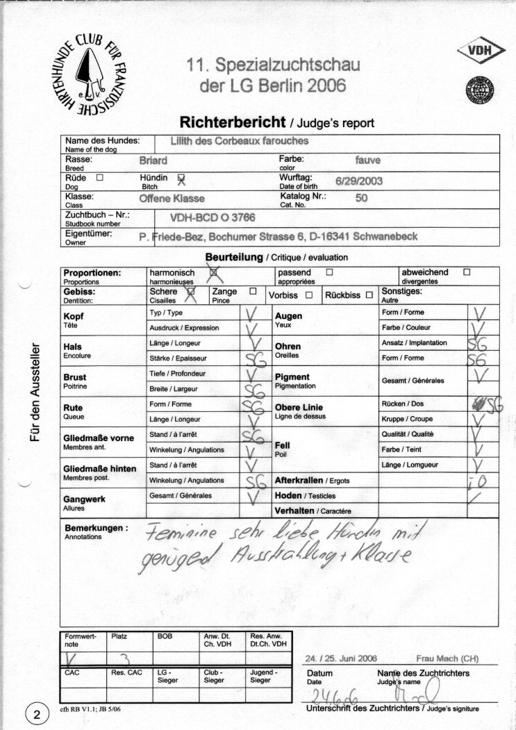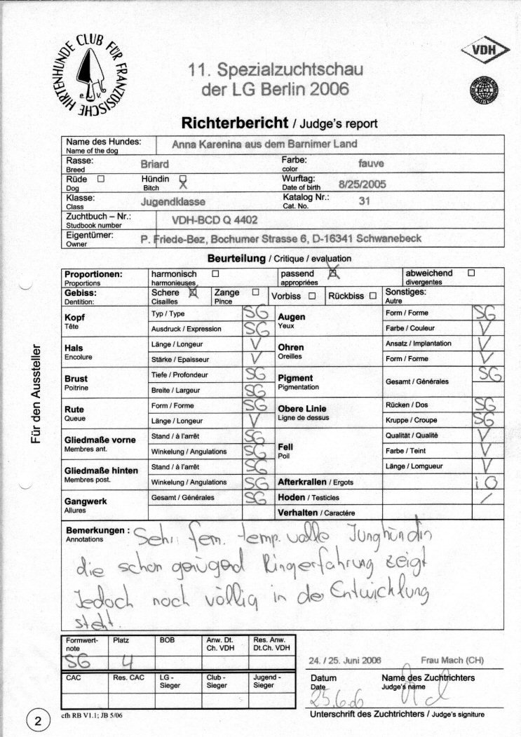 Die freundliche Schweizer Richterin stand zu unserer Freude auf gutes Gangwerk, meinte "vorzüglich" und gab uns den dritten Platz.