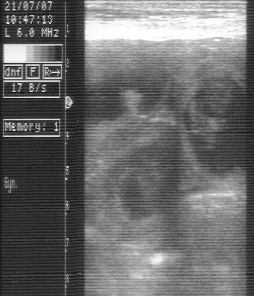 Fünf Echos waren im Ultraschallbild zu erkennen. Das ist freilich nicht die wirkliche Zahl. Beim letzten Wurf hatte der Doktor drei sehen können, schließlich waren es dann acht Welpen.