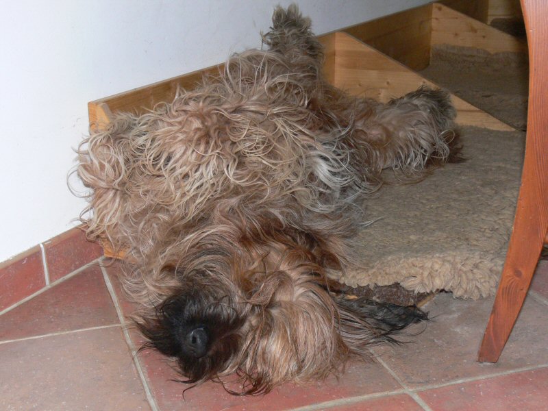 Im übrigen ist Obstzeit, wovon vor allem Anna Karenina begeistert ist. Im Garten sucht sie sich vom Fallobst (Äpfel und Pflaumen) das beste aus. Außerdem kommen wir auf unserem Standardspaziergang immer an einem Pflaumenbaum vorbei, der halb auf die Straße ragt. Dort besorgt sich Anna dreimal am Tag einen Imbiß.