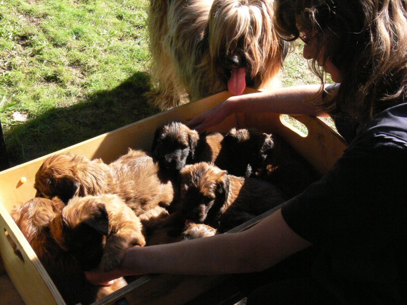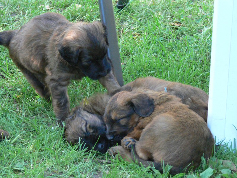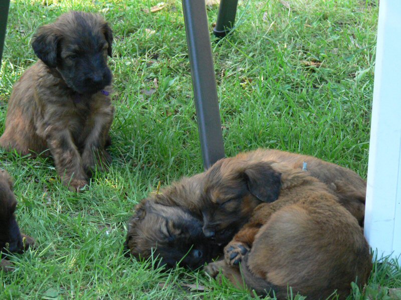 Überall in der Nachbarschaft wird krakeelt mit Rasenmähern, Motorsensen, Kreissägen. Die Welpen tragen es mit Fassung und können sich so schon an die Verrichtungen des Alltags gewöhnen.