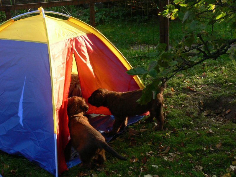Um ihr Geschäft zu erledigen, verlassen sie jetzt schon häufig von selbst die Terrasse. Das ungeliebte Wort NEIN lernen sie zur Zeit kennen.