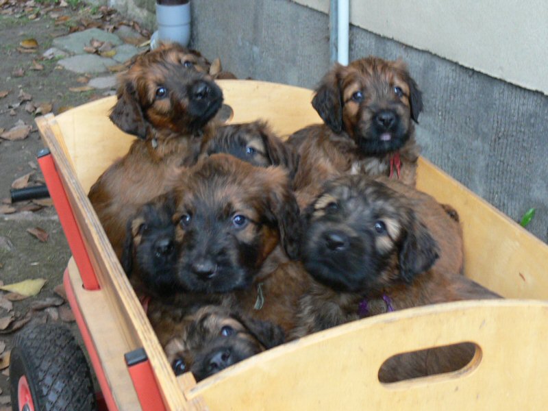 In der nächsten Woche wird der Wurf vom Zuchtwart beurteilt. Außerdem stehen einige praktische Übungen wie Auto fahren und an der Leine spazieren gehen an.