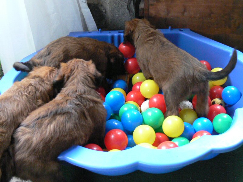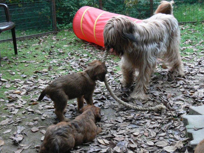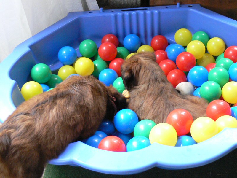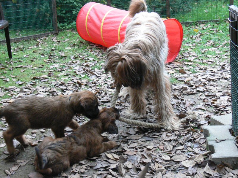 Anna und Lilith kümmern sich einträchtig um die Welpen. Wir freuen uns, daß es nicht einmal Streit gibt, wenn beide gerade mit demselben Welpen spielen wollen.