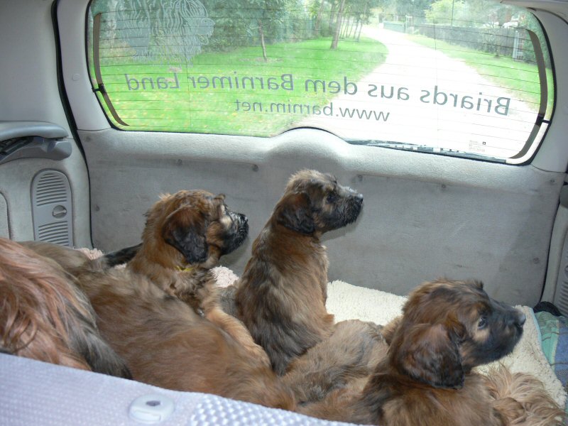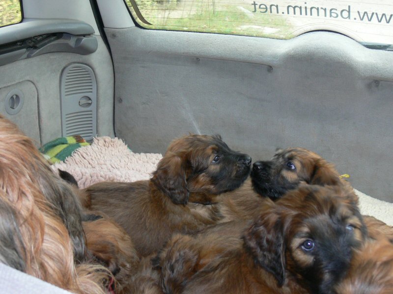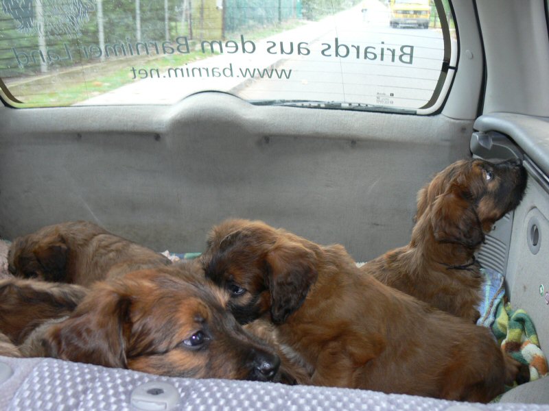 Die letzte Woche ist geprägt von praktischen Verrichtungen. Heute haben wir die erste Portraitserie aufgenommen. Es ist schwierig, die quirligen Welpen dazu für ein paar Sekunden ruhig zu stellen. Auch die erste Autofahrt, noch in Begleitung von Mama, war heute dran.