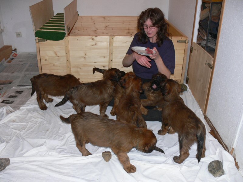 Doch der Abschied naht. Sechs der Welpen werden uns kommende Woche verlassen. Es war an der Zeit, die Welpen ins öffentliche Parkett einzuführen und den Spaziergang an der Leine zu üben. Auch die zweite Autofahrt, ohne Mama, stand heute auf dem Programm. Und schließlich, weil das Wetter so schön war, noch eine Serie Portraits.