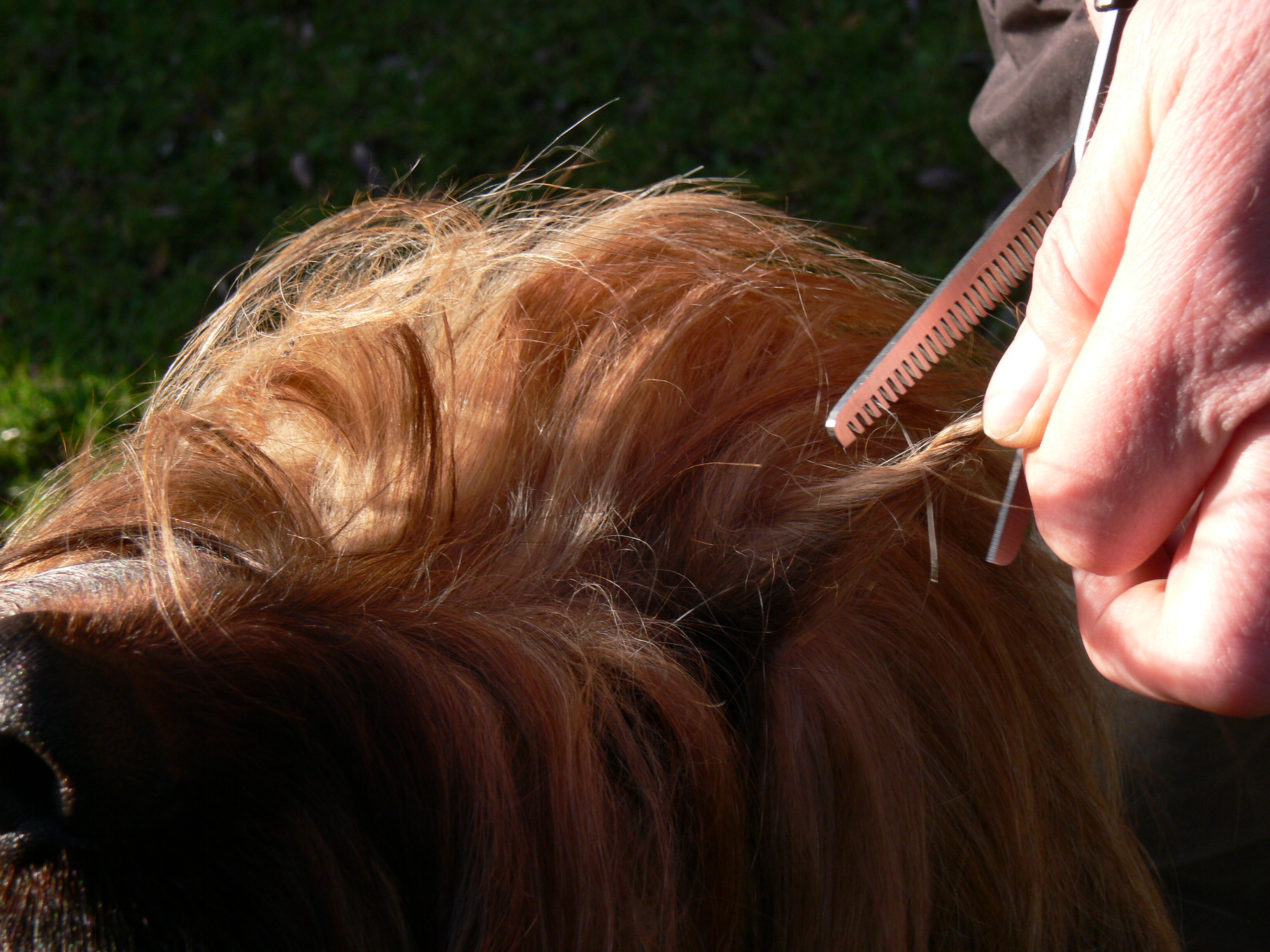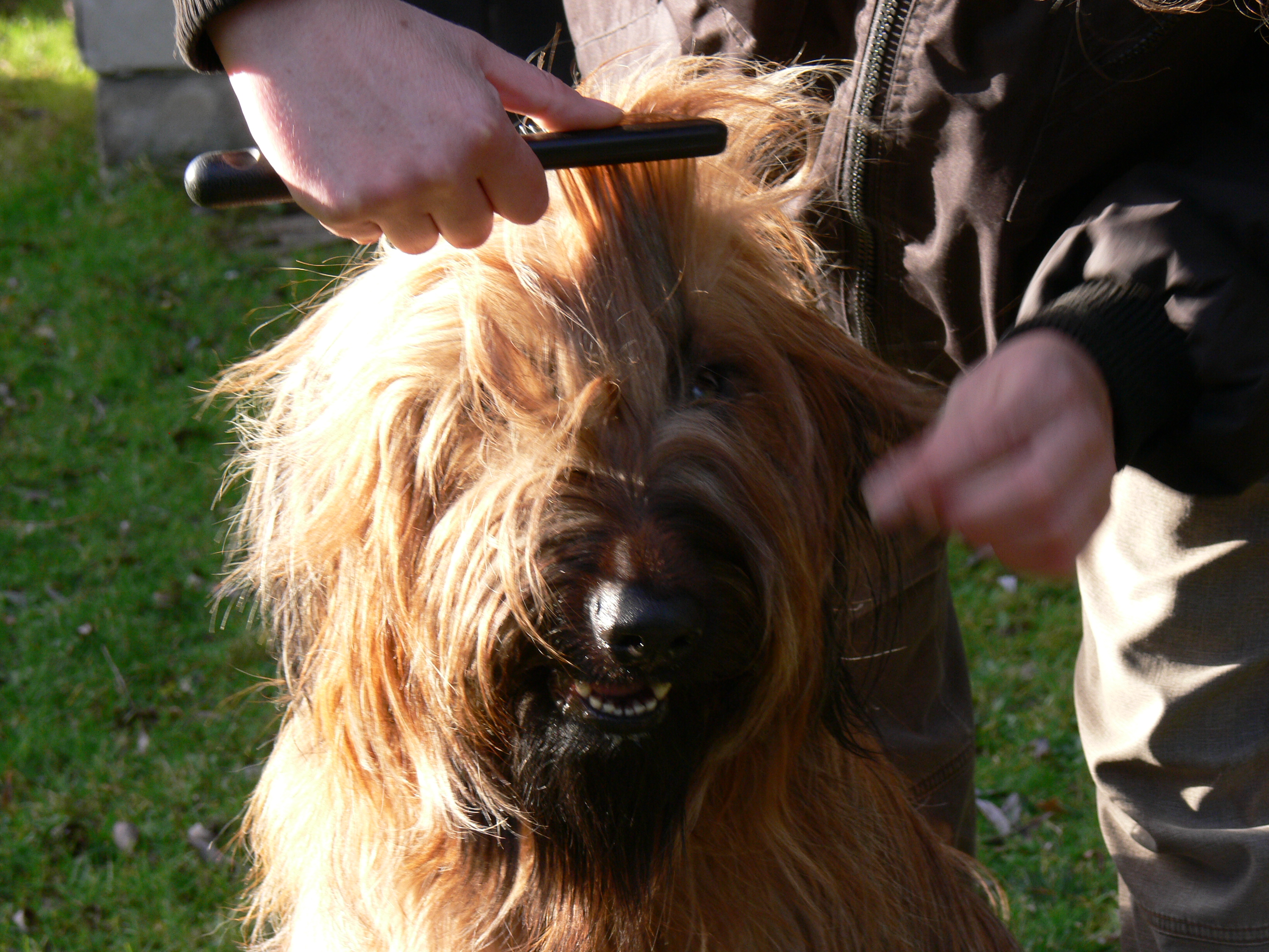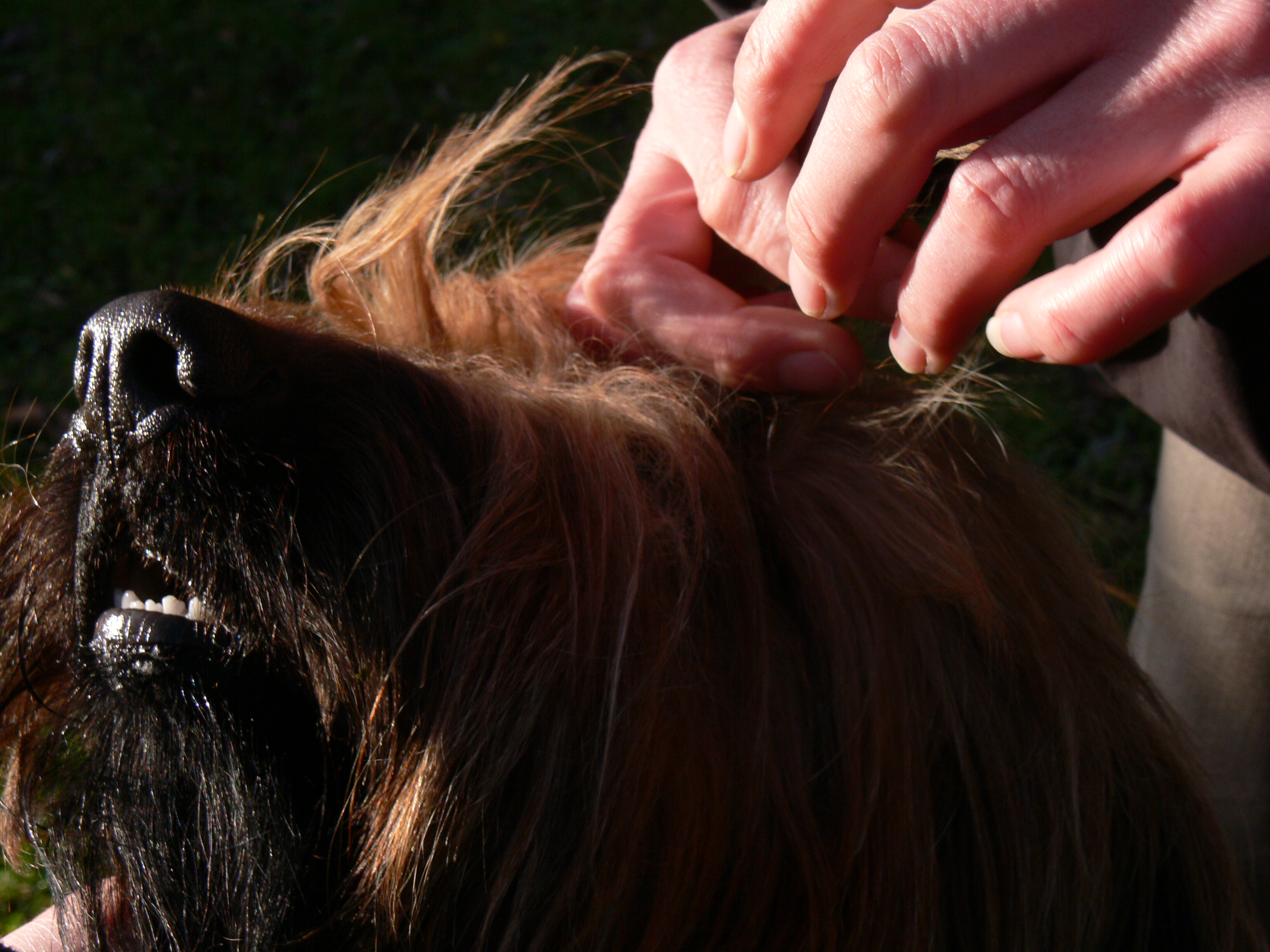 Frauchens Arm ist wieder in Ordnung und daher wurde heute Annas Pony geschnitten. Der Vorhang vor den Augen war zu dicht geworden. Ausführlich beschrieben </weblog/1141413846:114850.html> haben wir die Prozedur schon einmal vor etwa zwei Jahren im "BriardWiki" <http://www.barnim.net/weblog/wiki/BriardWiki>. Damals brauchte Anna noch keinen Ponyschnitt und Lilith hatte nach ihrem ersten Wurf gerade wieder etwas Fell bekommen.
