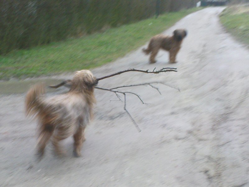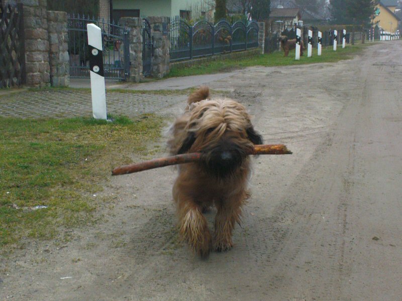 Der Sturm hat einiges Material bereitgestellt. Unsere Hunde sammeln wieder Holz für das Feuerbecken, zum klimaschädlichen Verbrennen an Sommerabenden im Garten. Das heißt, Lilith ist jetzt (meist) eine Dame, aber Anna Karenina läßt sich keinen Spaß entgehen.