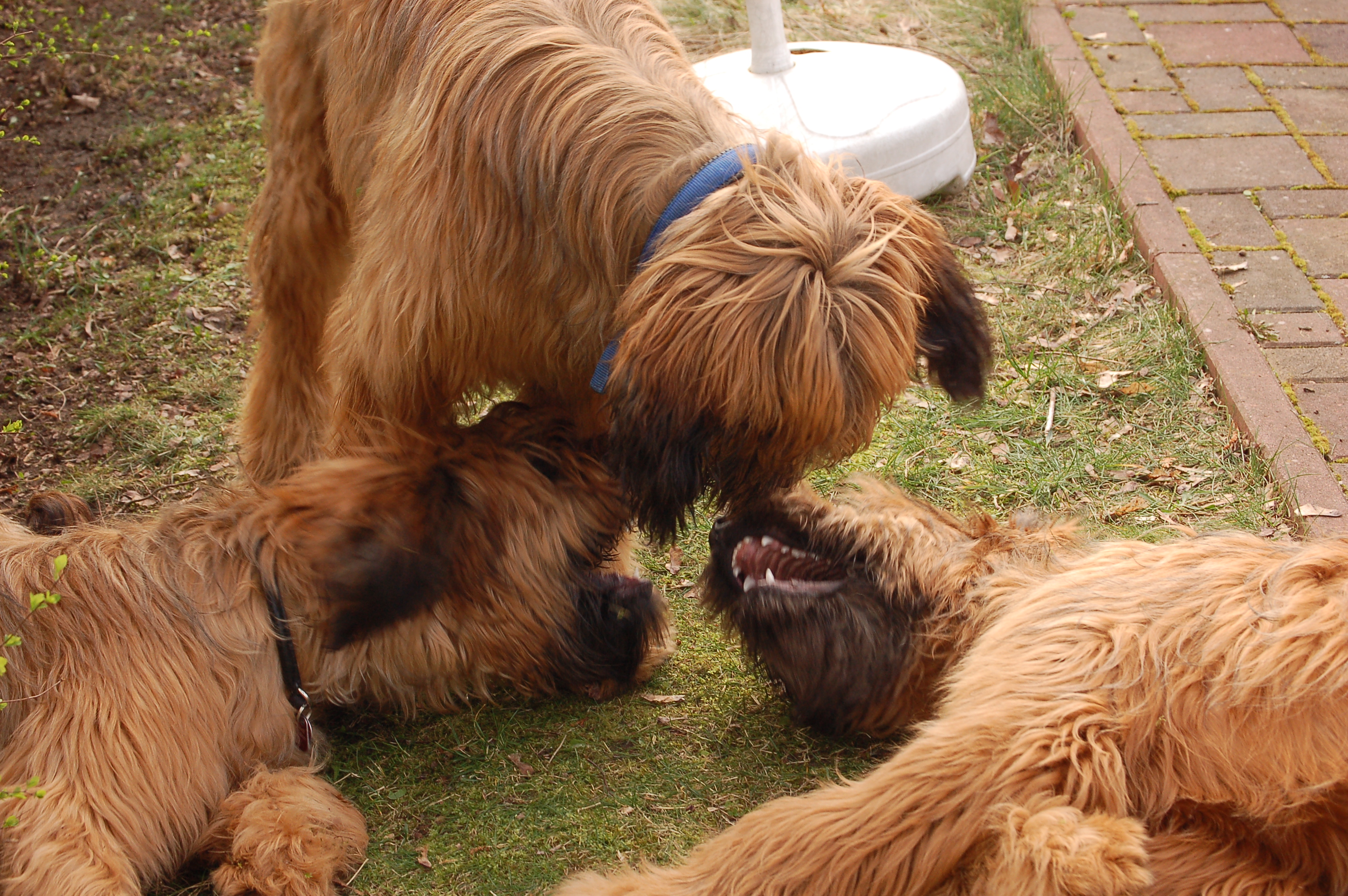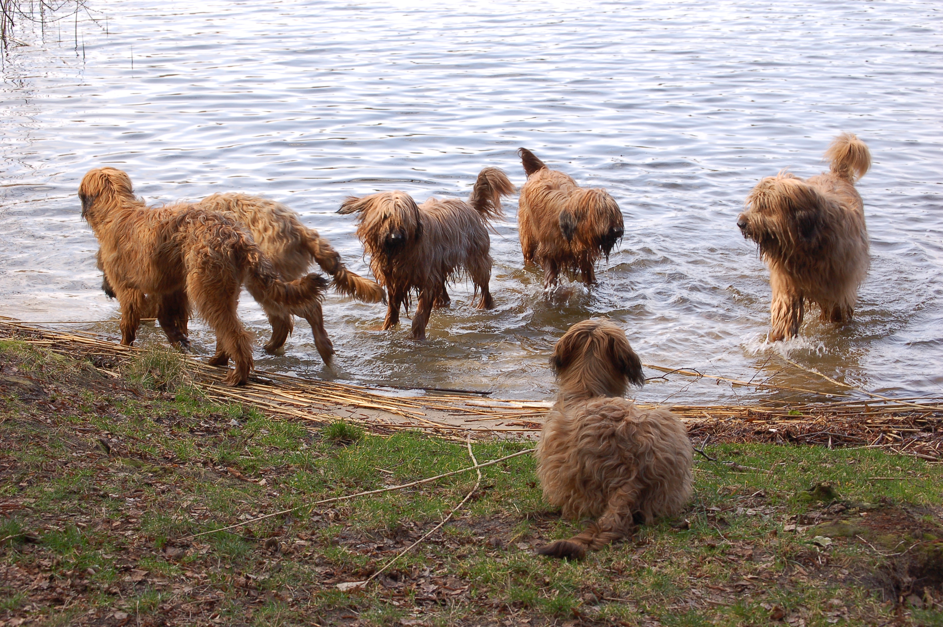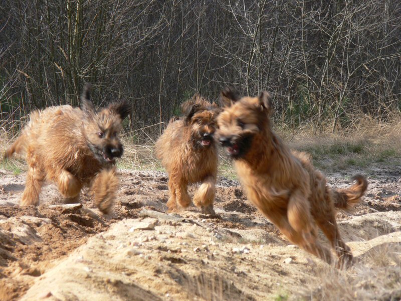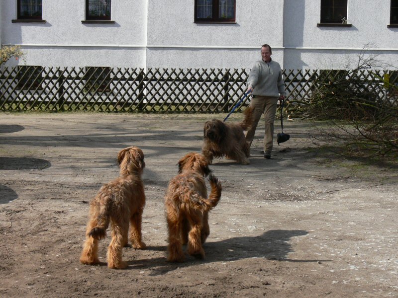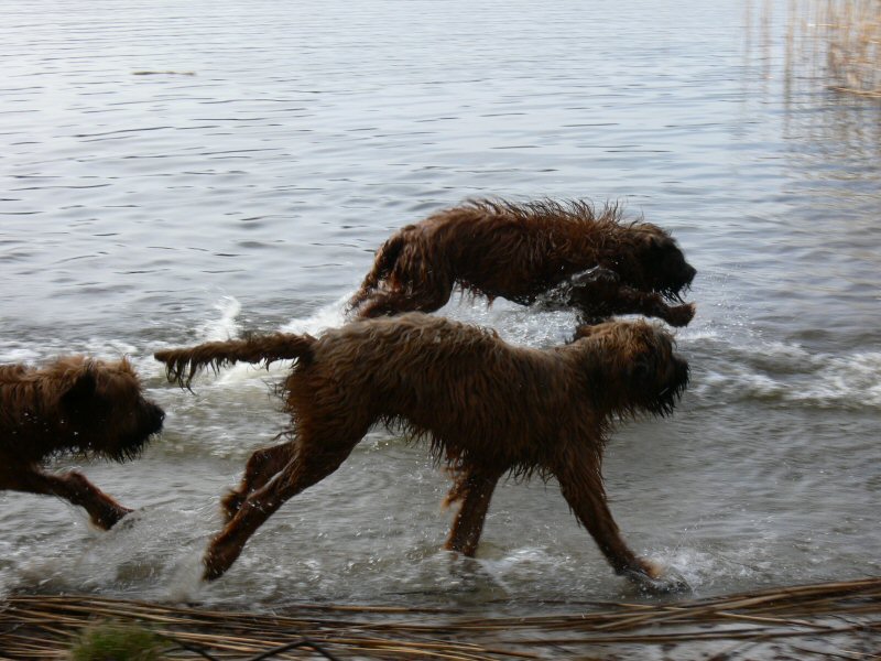 Uns ist aufgefallen, wie nett und ausgeglichen die drei Junghunde miteinander umgegangen sind. Als Lulu anfangs etwas eingeschüchtert war, hat Pelle es geschafft, daß sie sich wieder sicher fühlte. Und Larsson war auch sehr charmant.