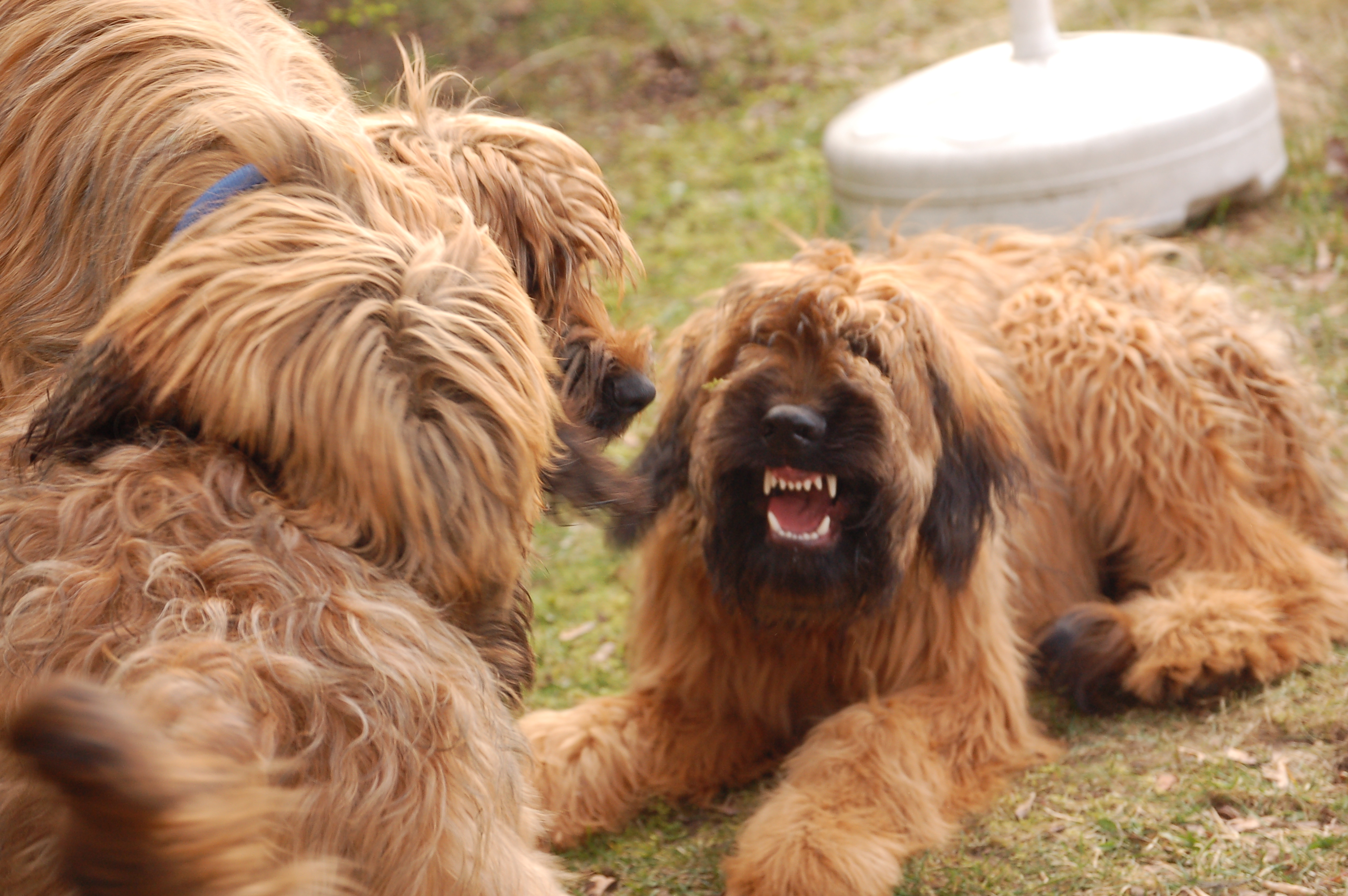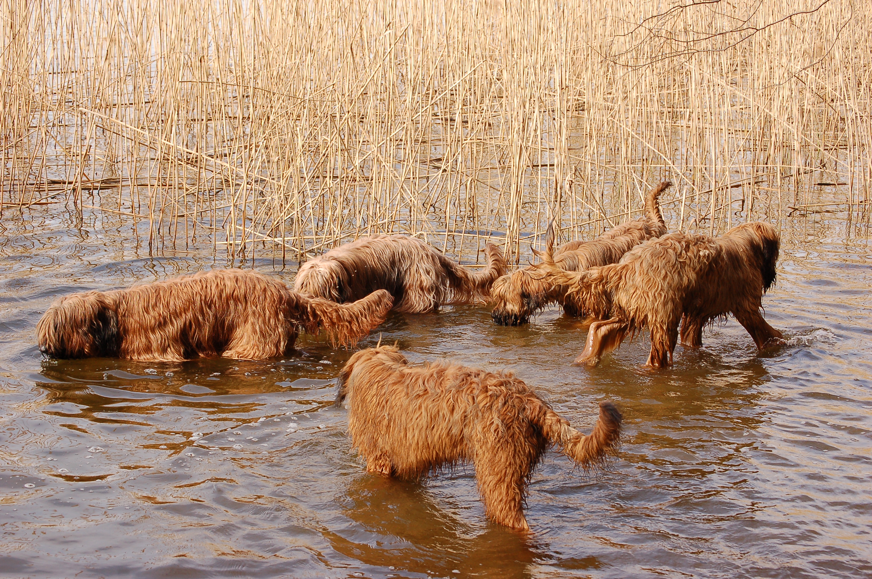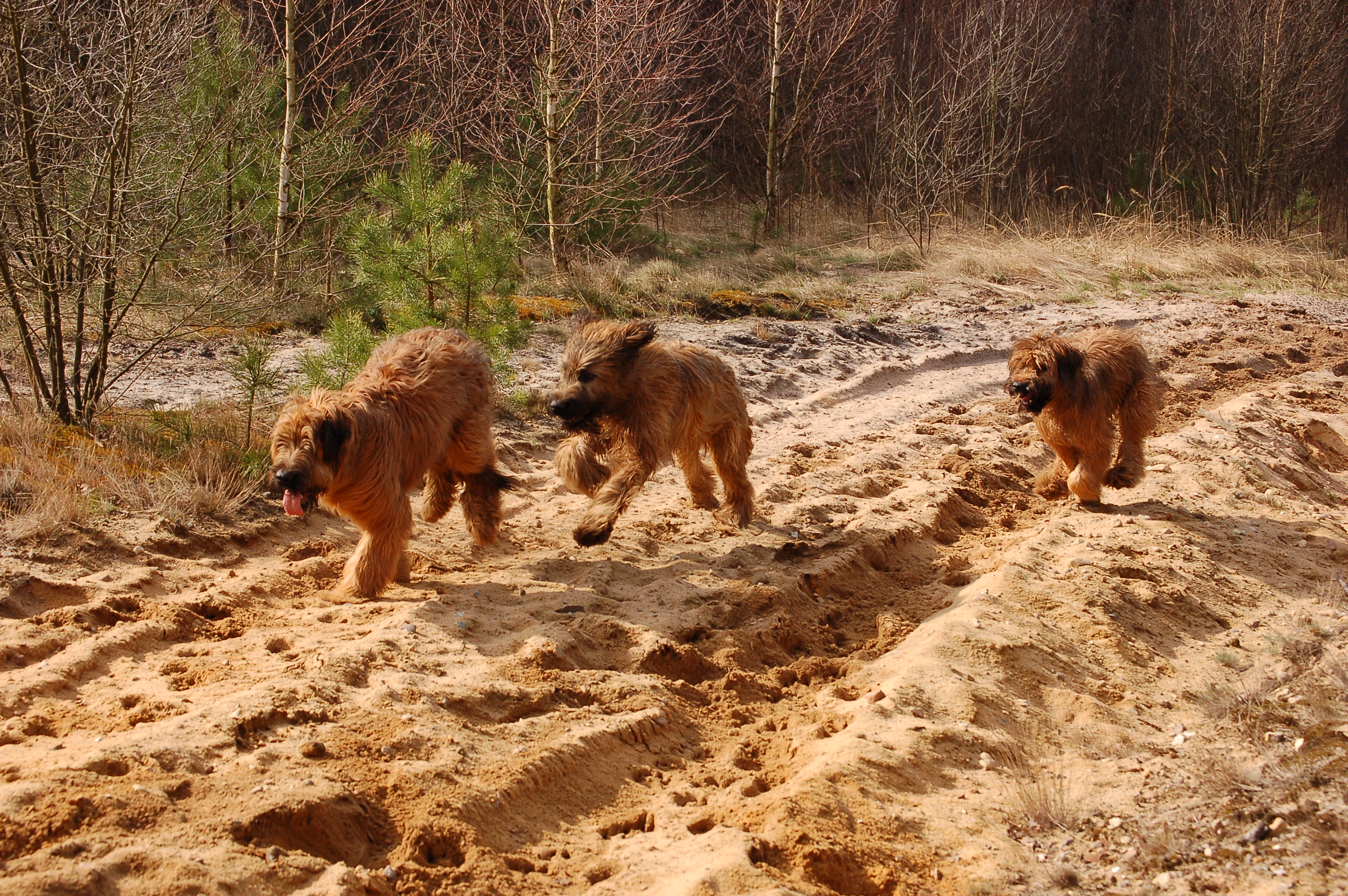 Uns ist aufgefallen, wie nett und ausgeglichen die drei Junghunde miteinander umgegangen sind. Als Lulu anfangs etwas eingeschüchtert war, hat Pelle es geschafft, daß sie sich wieder sicher fühlte. Und Larsson war auch sehr charmant.