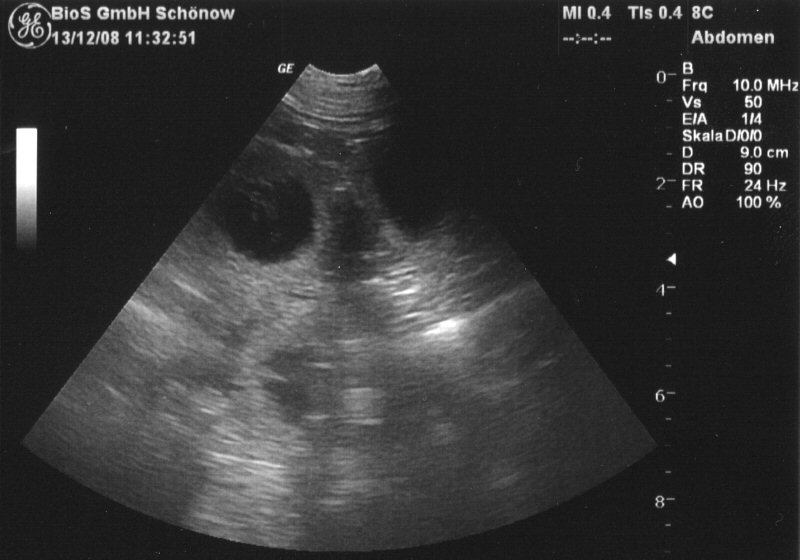 Wir waren mit Lilith beim Tierarzt und haben Ultraschallaufnahmen machen lassen. Die schwarzen Knubbel auf dem Bild rechts sind Fruchtblasen. Drei waren deutlich zu erkennen, zwei weitere zu erahnen. Erfahrungsgemäß werden es schließlich noch mehr Welpen, als im Ultraschall zu erkennen sind.