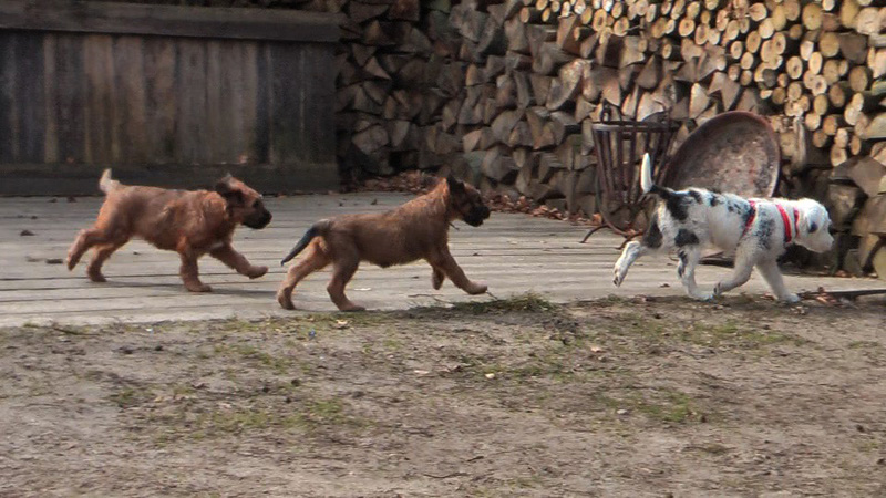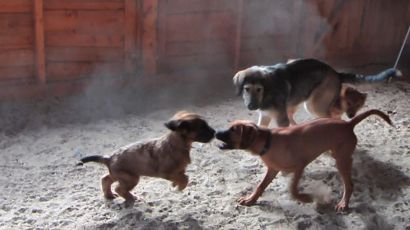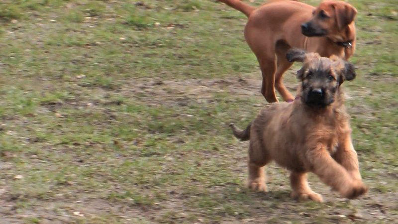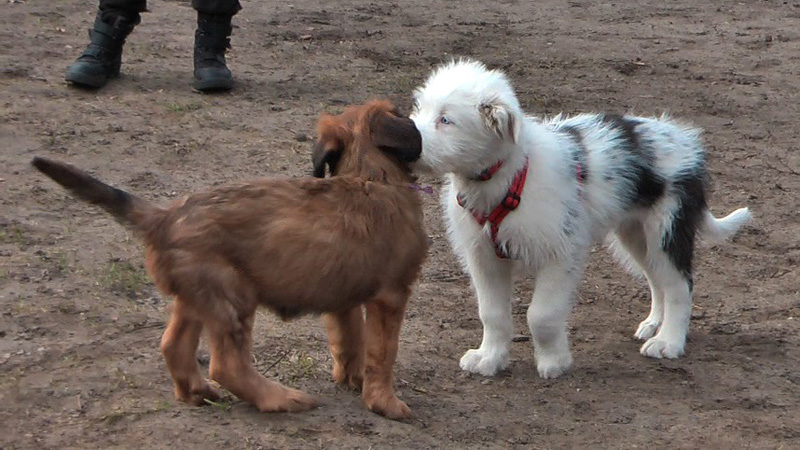 Gearbeitet wurde nicht, da es momentan vor allem darauf ankommt, positiven Kontakt zu etwa gleichaltrigen oder gleich weit entwickelten Hunden aufzubauen. Damit sollte spätestens im Alter von 10 Wochen begonnen werden.