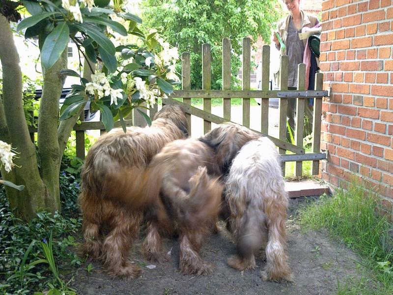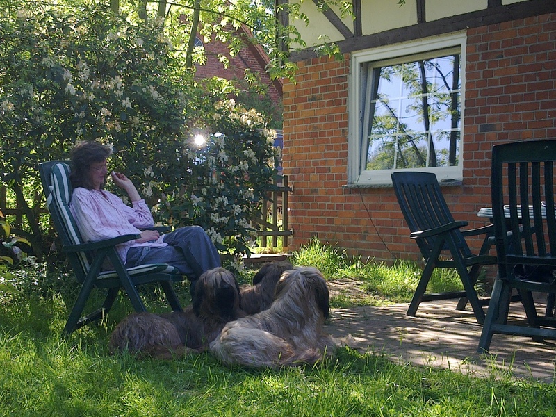 Am zweiten Tag war Frauchen allein auf der Ausstellung, Herrchen hat im Garten gesessen und gearbeitet. (Behauptet er.) Das war auch sehr schön, denn Ausstellung ist eigentlich Streß. Aber am schönsten ist es natürlich immer, wenn Frauchen zurückkommt.