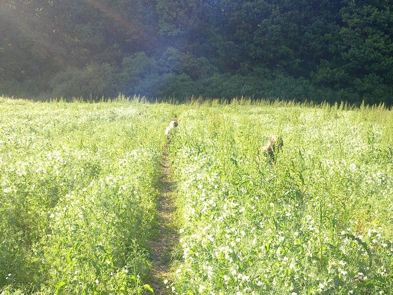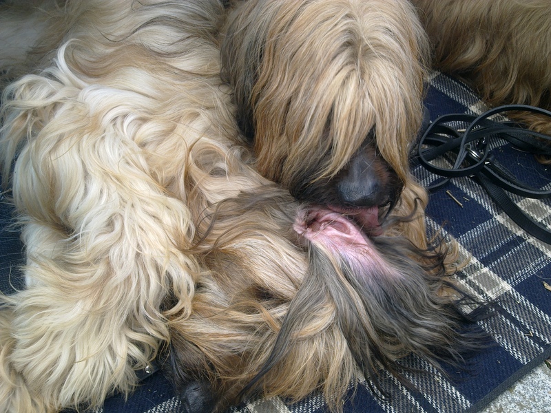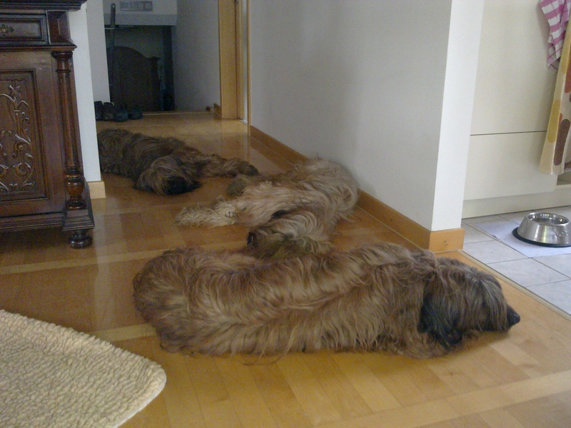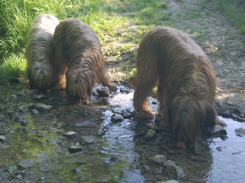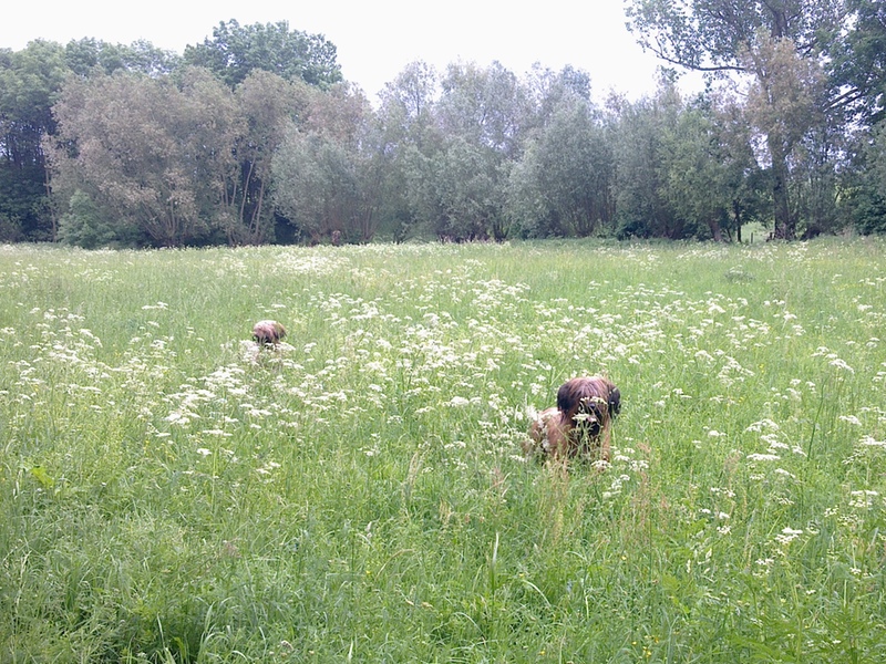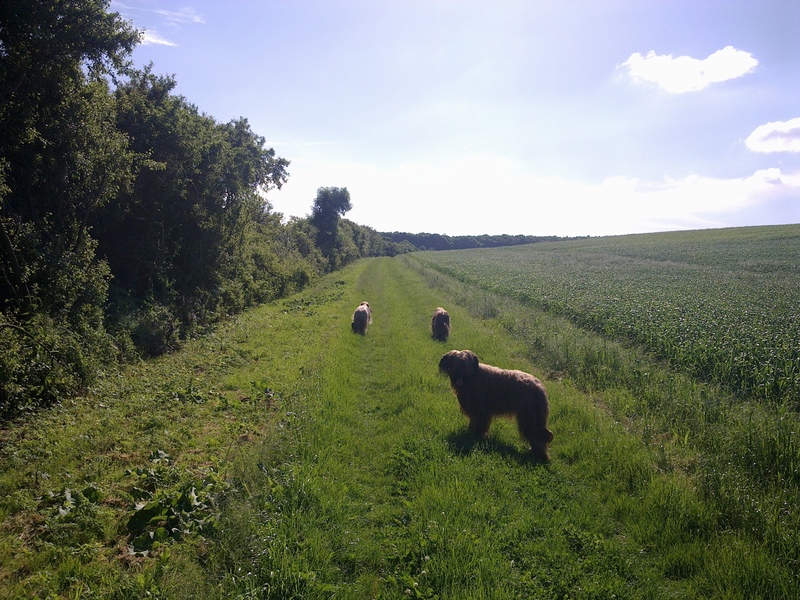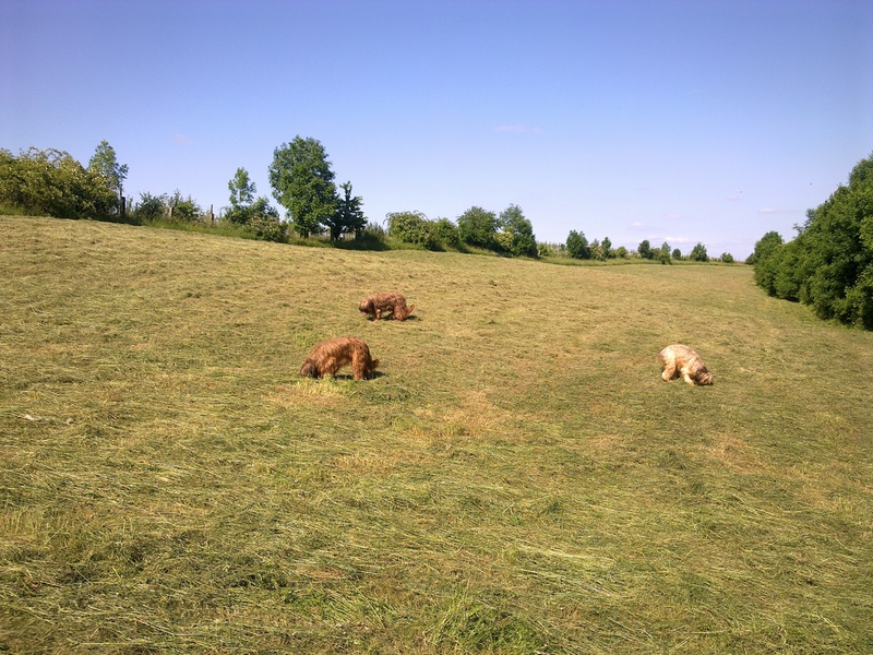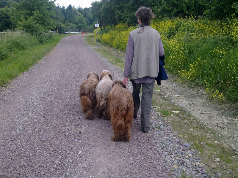 Bilder aus dem Ring haben wir diesmal nicht, aber Bilder vom Spaziergang nach der Ausstellung. Eigentlich dachten alle Hunde nach der Rückkehr, sie könnten sich nun nach dieser Anstrengung hinlegen und ausschlafen. Aber dann folgte noch ein dreistündiger Spaziergang über Wiesen, Felder, Abhänge, Brücken. Danach waren alle richtig müde, die Menschen allerdings auch.