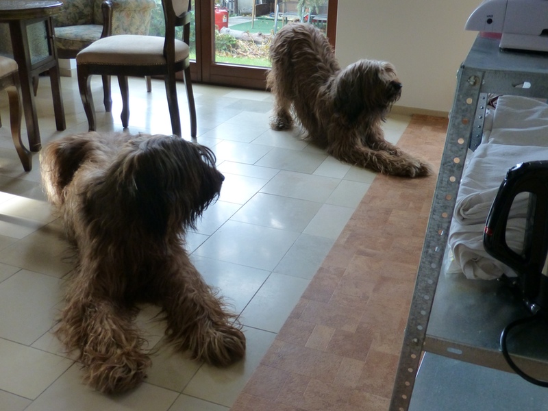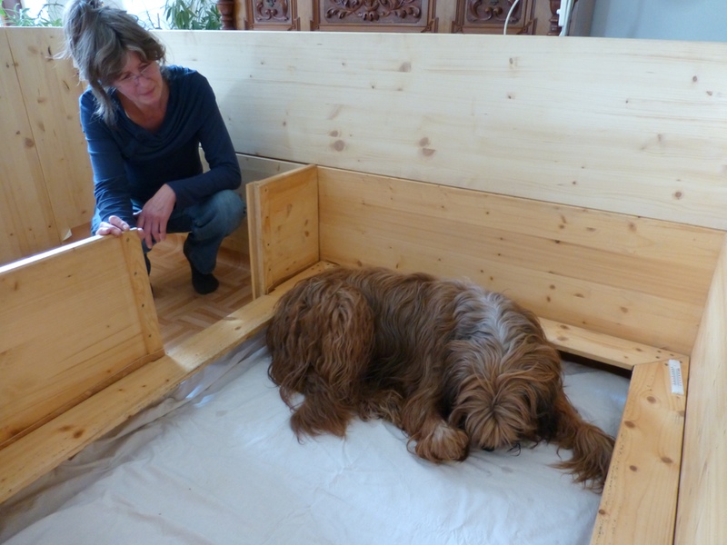 Gestern haben wir die Wurfkiste aufgestellt und heute hat Anna sie inspiziert. Es war nicht leicht, den beiden anderen zu erklären, daß sie nicht dran sind.