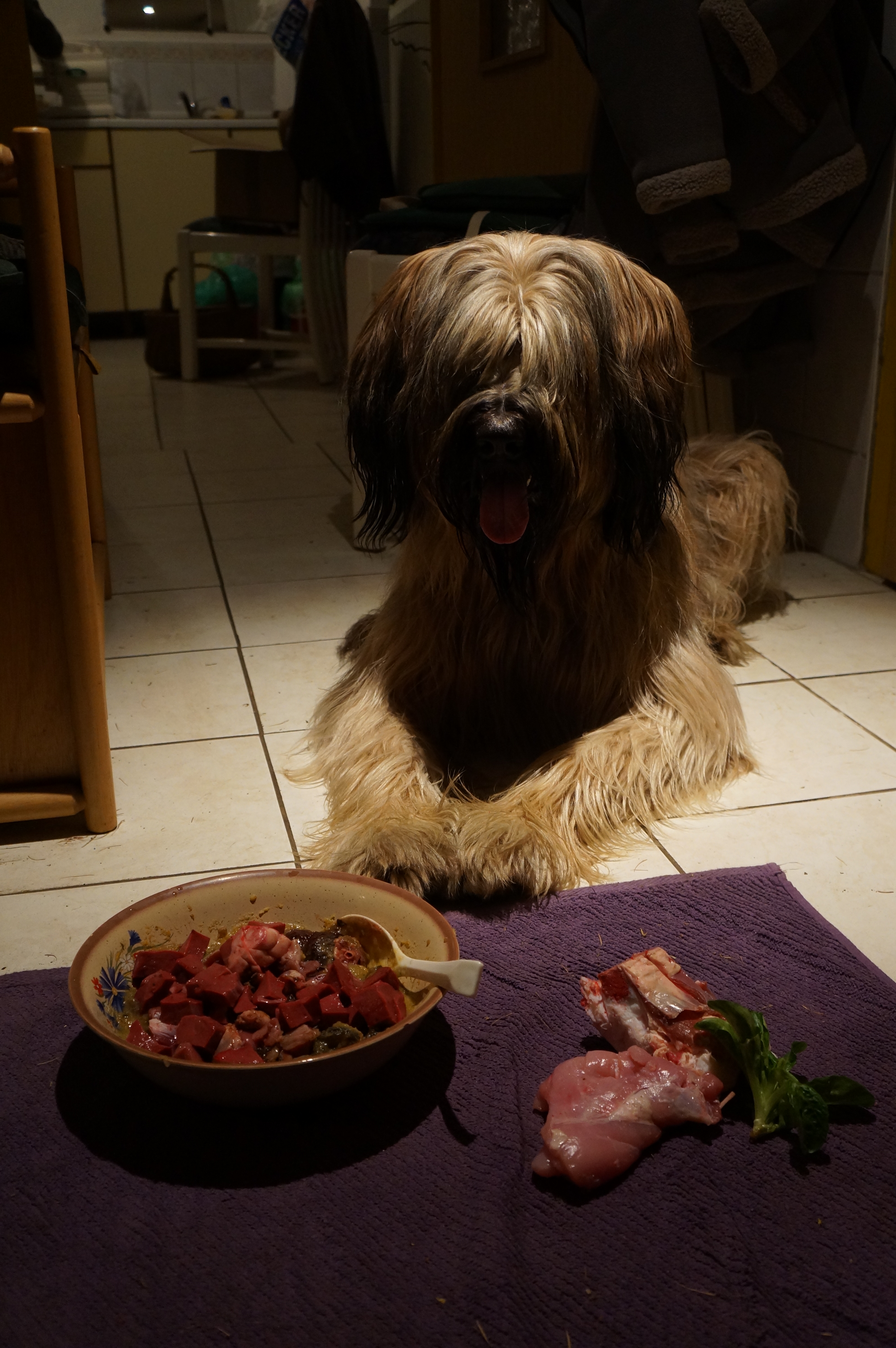 ... So ein genügsamer Hund!! Wir können es kaum glauben! Als Poldi noch unser einziges haarigere Familienmitglied war, hat er an allem rumgemäkelt noch nicht mal sein Trockenfutter war ihm Recht. Nun wo sie zu zweit sind, bekommt die Nahrungsaufnahme natürlich einen gaaaanz anderen Stellenwert im Hundeleben aber diesen Gemüsebrei würden beide im Einklang ausschlagen. Aber wenns schön u gesund macht...;)