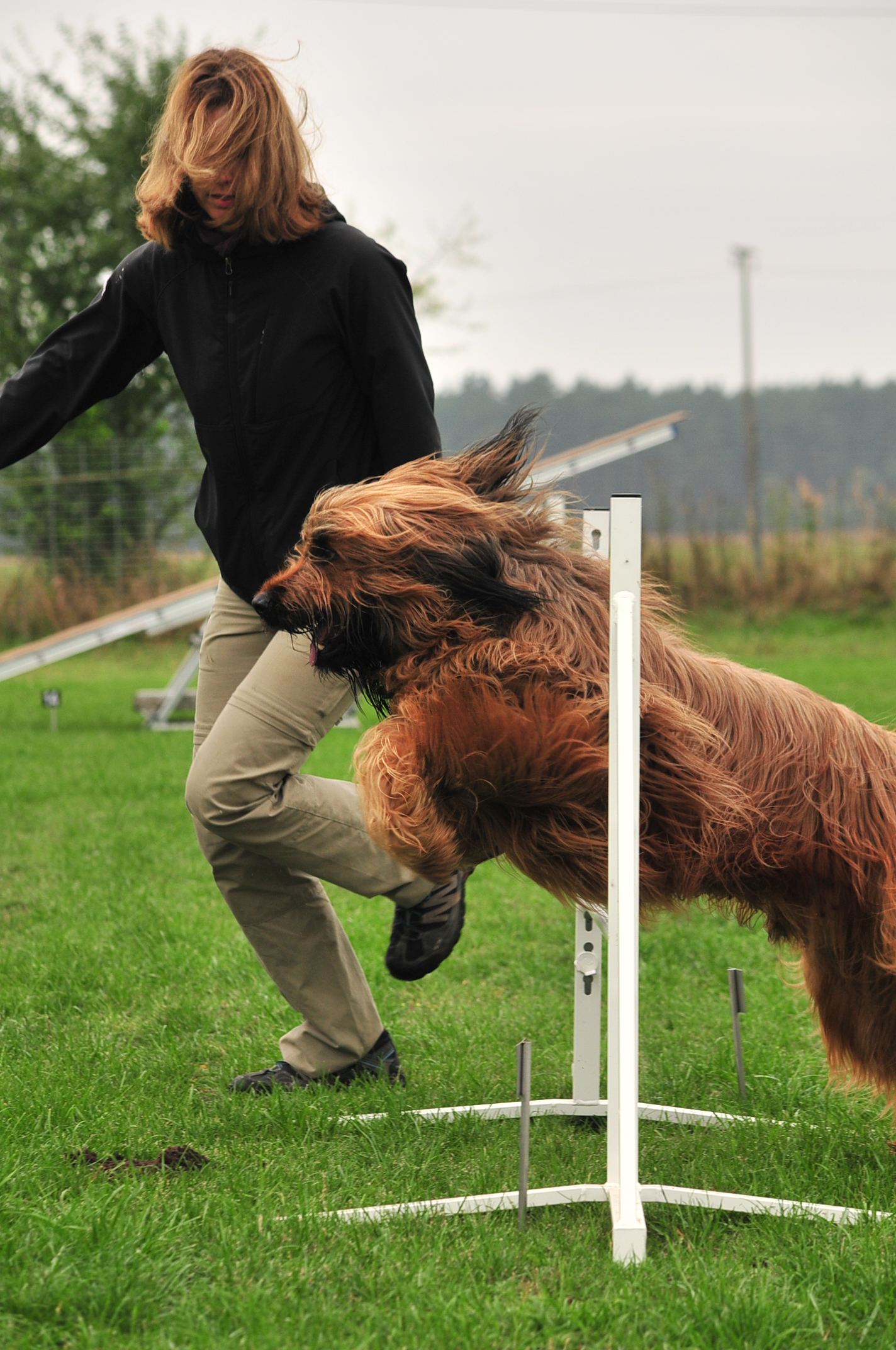 Wir üben Agility. Das ist Bewegung und Spaß für Ulrike und für mich. Wobei ich wohl noch lernen werde mehr alleine zu laufen, damit Ulrike nicht so aus der Puste gerät (hihi). Aber noch muss sie fast auf gleicher Höhe mitlaufen. Das tut soooo gut!!!