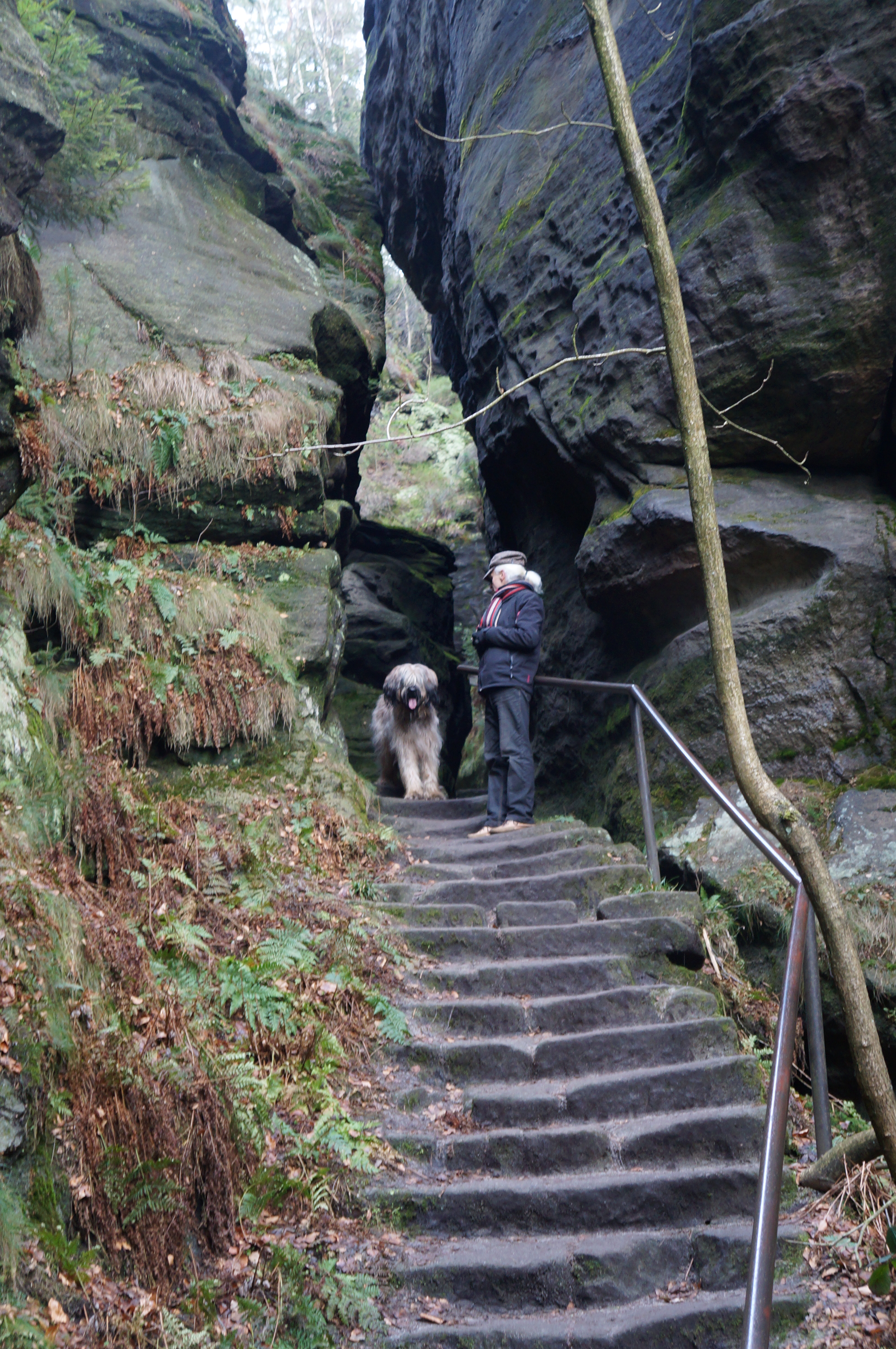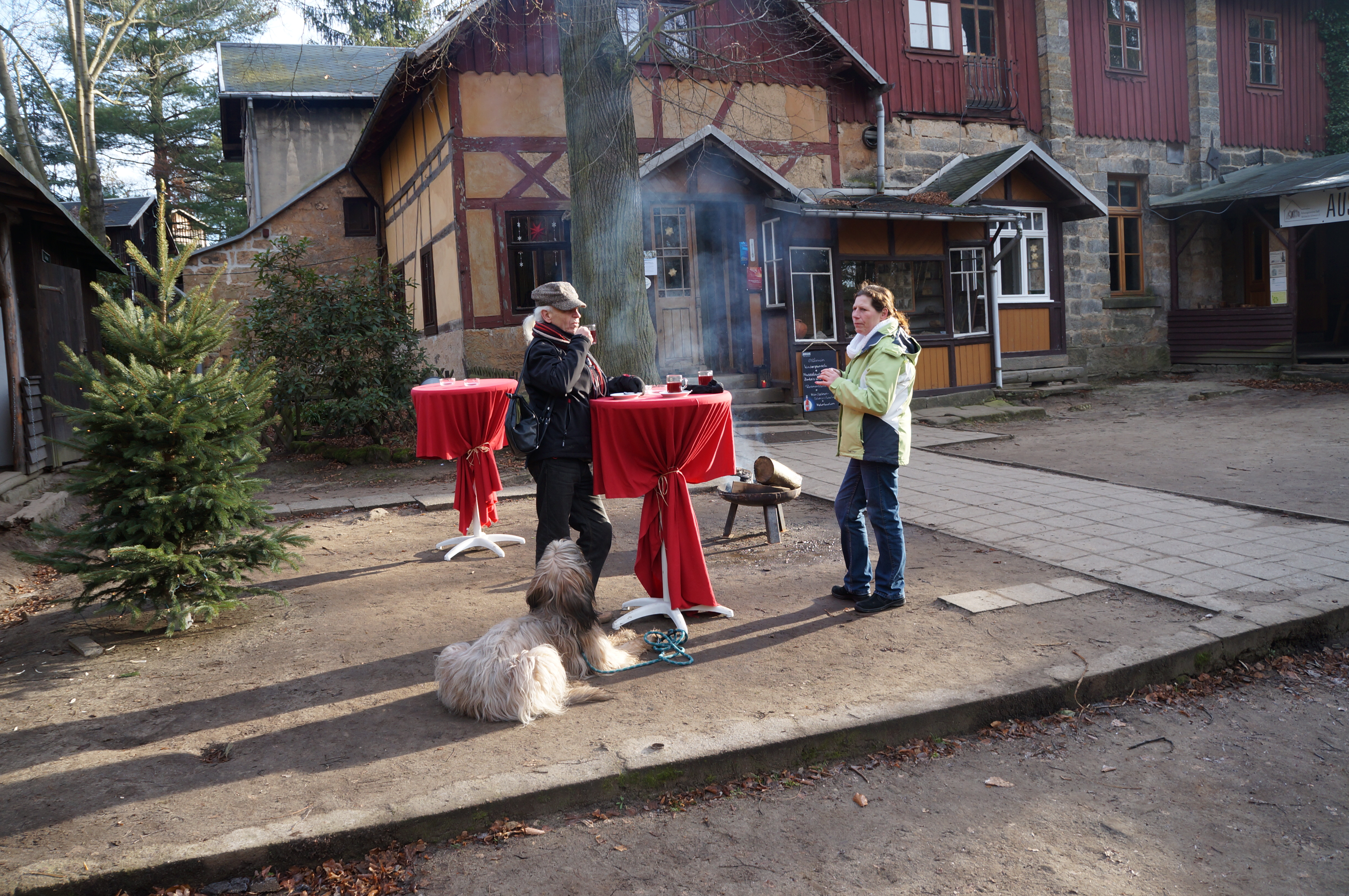 Wir hoffen, Ihr seid alle gut ins neue Jahr gekommen. Allen wünschen wir Gesundheit und eine glückliche Zeit. Am Silvestertag sind wir in der Sächsischen Schweiz auf den Pfaffenstein gewandert. Es war ja so tolles Wetter und es waren nur freundliche Menschen unterwegs, die auch mit einer Hundebegegnung kein Problem hatten.Oben angekommen gabs erst mal für Menschen einen Glühwein. Nicht weils denen kalt war – nein weils Tradition und eben schön ist. Eure Eleanor