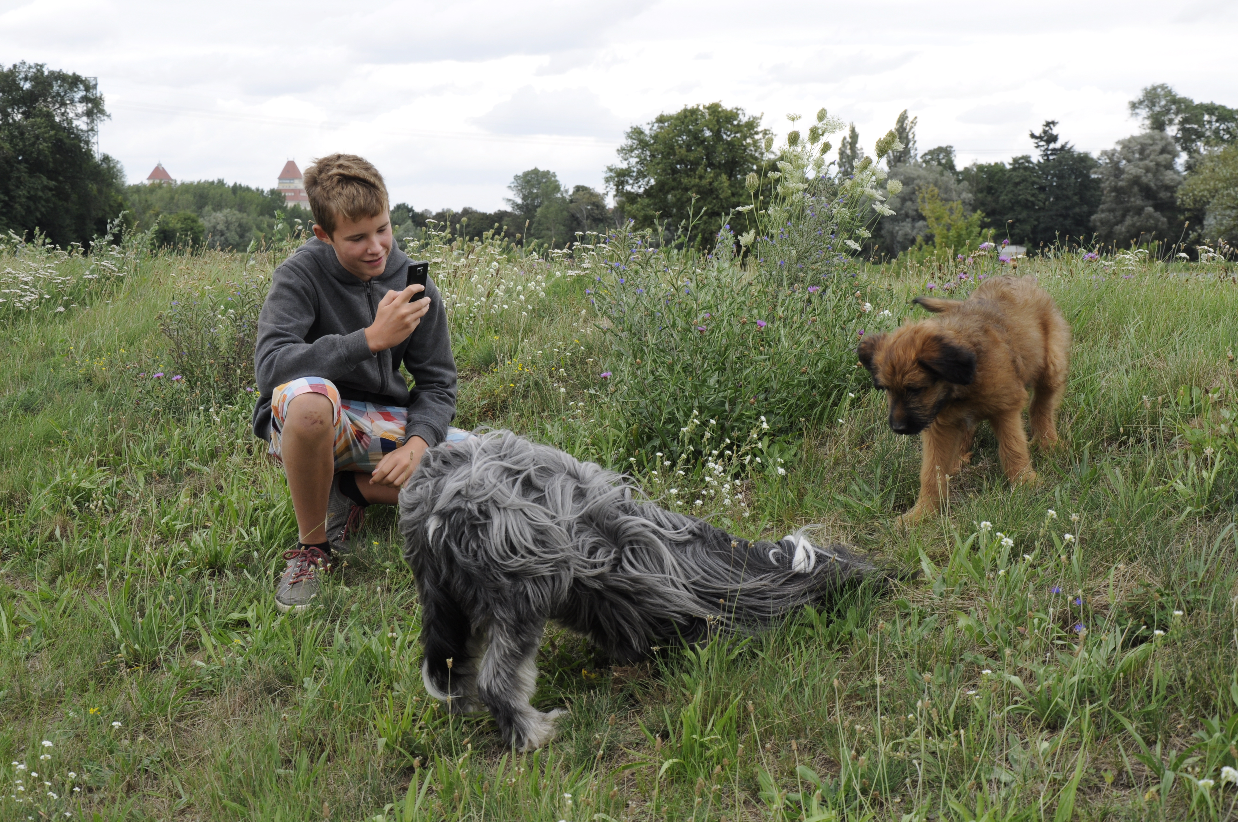 Elli hat ja offensichtlich richtig Spaß mir Dir. Lilith hat eine Weile gebraucht, den Zuzug von Garbo zu akzeptieren, aber inzwischen ist sie mit dem Welpen einverstanden, Garbo darf sich gelegentlich zu ihr auf eine Decke legen, und es kommt sogar vor, daß Lilith mit dem Welpen ein klein wenig spielt.