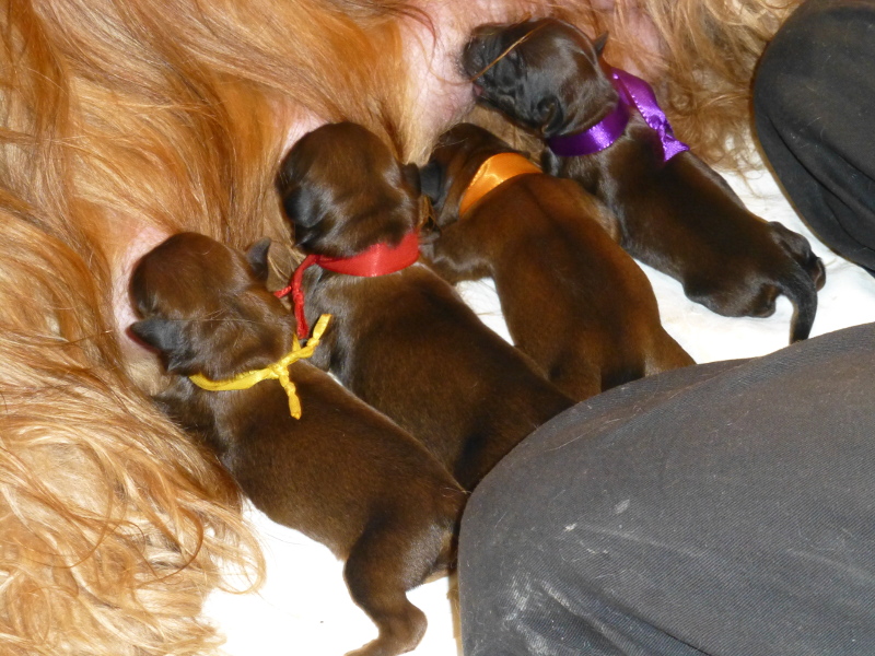 Herzlichen Glückwunsch zu 4 süßen Mädchen.Wir haben schon jeden Tag gelauert,wann die Welpis endlich kommen. Demnächst gibt es auch wieder etwas neues von uns zu hören.Liebe Grüße Fam. Mehnert mit Elli und Gretchen