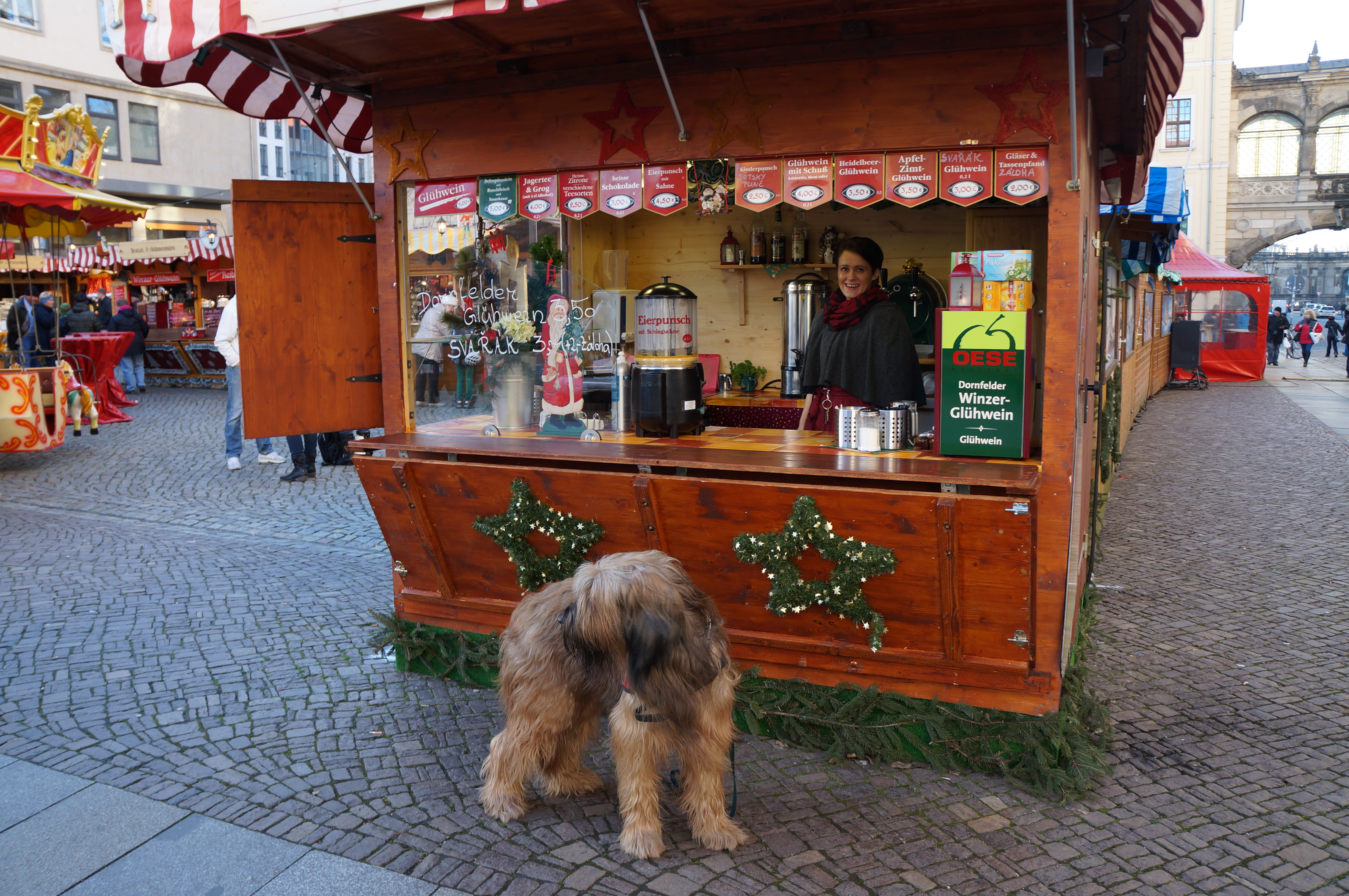 Wir möchten von dieser Stelle all die grüßen, die sich bei der Sammelaktion am Striezelmarkt in Dresden sehr für die Rasse Briard interessiert haben und sich auf der Barnim Seite informieren wollten. Vor allem grüßen wir zwei Ehepaare, die "ihre Lore" suchten und am dritten Tag wiederfanden. Oder durch Lore überzeugt waren, sich wieder einen Briard zu holen. Allen wünschen wir das Beste!