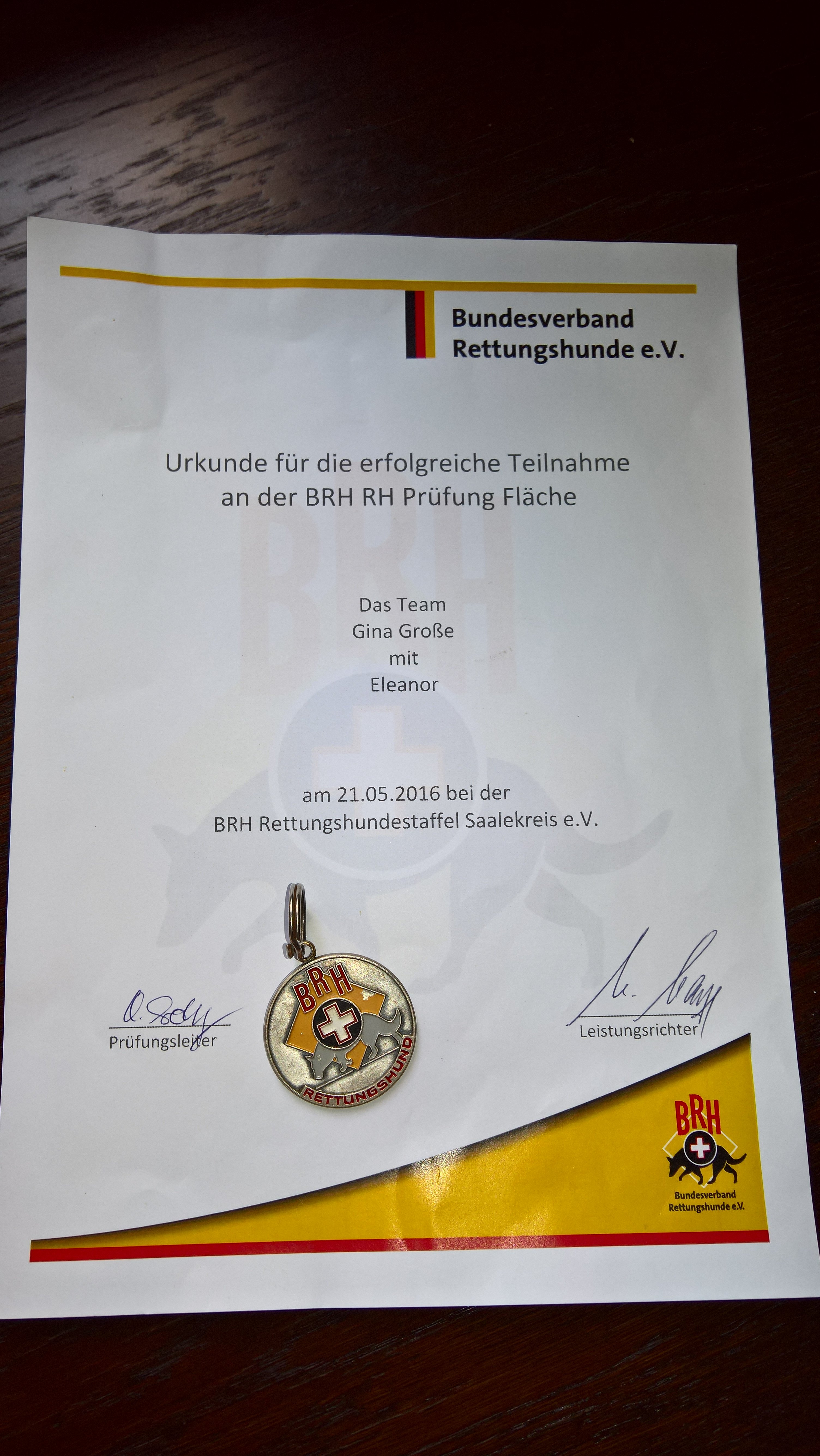 Die Rettungshundeplakette ist ja wirklich enorm schick. Wirkt wie eine zivile Variante des Ritterkreuzes und ist wohl auch so am kurzen Band zu tragen. Das könnte der Hund von Welt bei festlichen Anlässen doch durchaus tun. (Ist jetzt ganz ernst gemeint.)