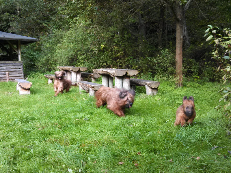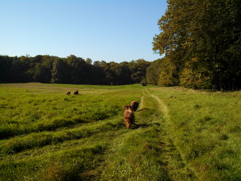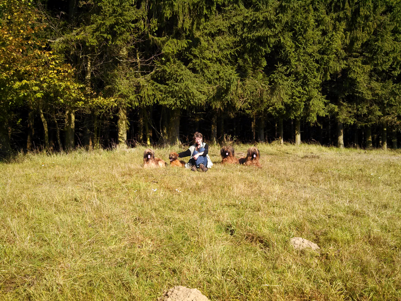 Lange Spaziergänge können wir Lilith nicht mehr zumuten, die Gelenke bereiten Schmerzen, und so lassen wir nach einer kurzen Runde die drei anderen auf einer Wiese spielen und Lilith thront darüber. Unsere heutige Wiese ist ohne Gebrauch eines Dreikantschlüssels zu erreichen, was bemerkenswert ist, und nicht einmal ein Verbotsschild mußten wir passieren, was geradezu unglaublich klingt. Nicht weit von der Wiese steht ein Funkmast, und so haben wir hier sogar Internet und können einen Beitrag schreiben. Wie häufig Anfang Oktober ist das Wetter fabelhaft und für diese Art den Tag zu verbringen genau richtig.