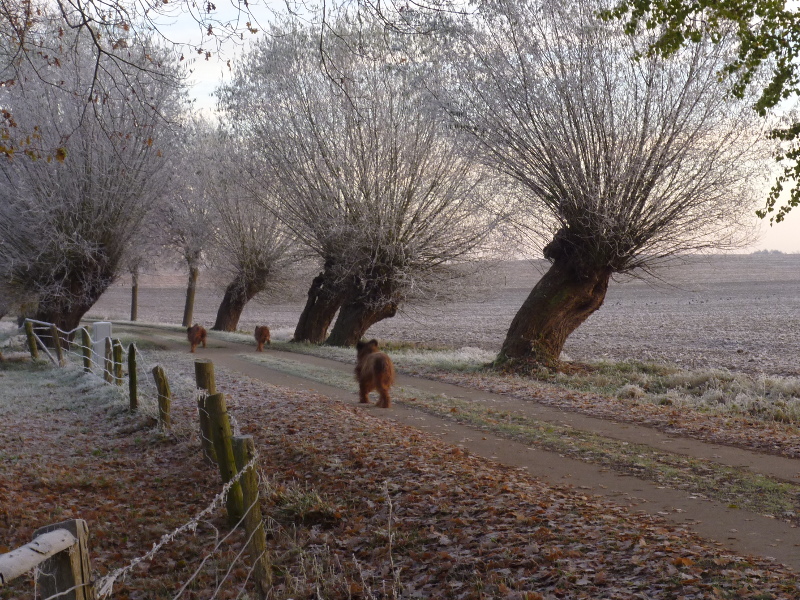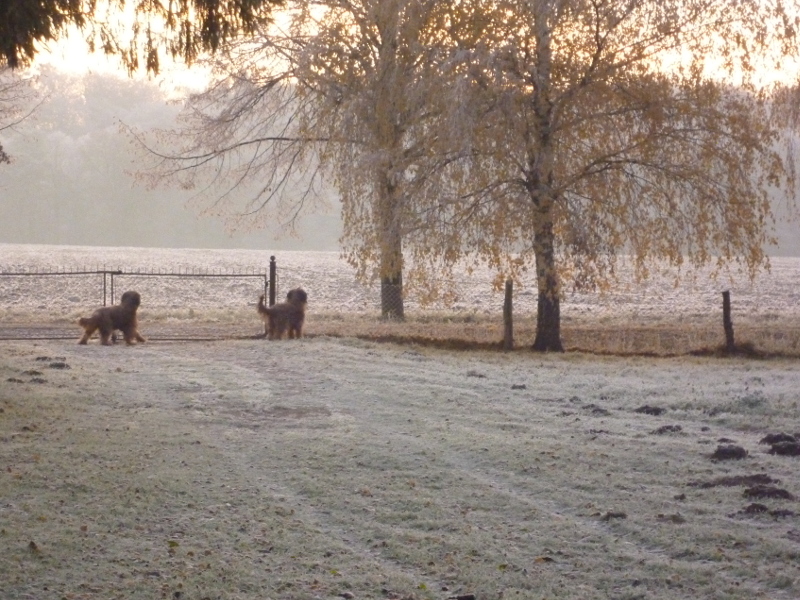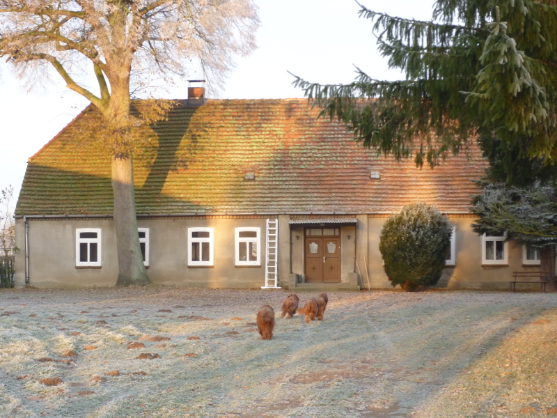 Der Herbst ist schnell gekommen. Ein rauher Ostwind fegte vergangene Woche durch die flache Landschaft. Unsere Hunde schätzen besonders die Küche, die dank der Kochmaschine der wärmste Raum im noch etwas kühlen Haus ist. Und sie sind verrückt auf den Obstgarten, der voller später Apfel- und Birnensorten steht, während in Schwanebeck schon alles Obst abgeerntet ist.