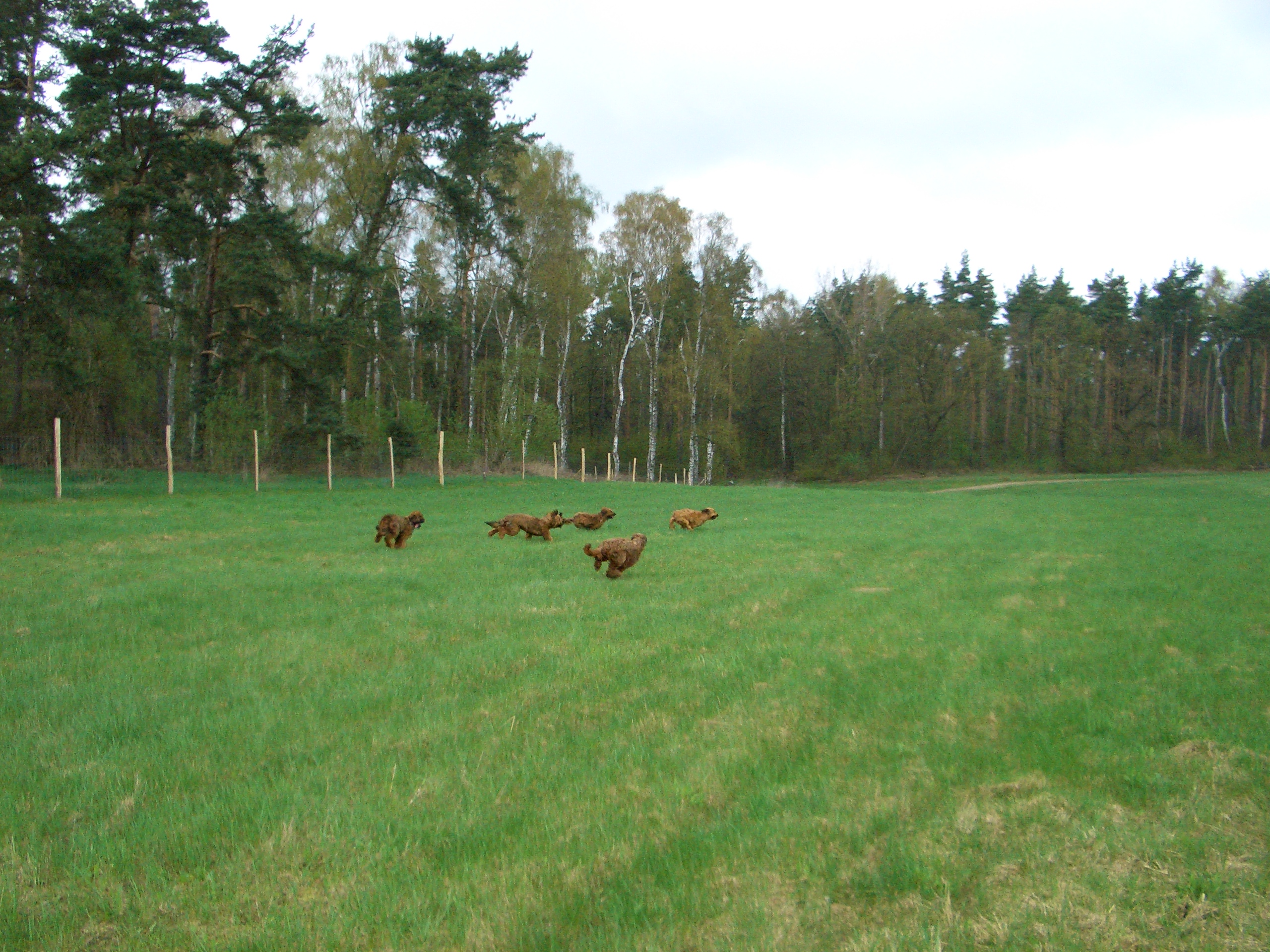 Aufregende 48 Stunden liegen hinter uns. Von Sonnabend mittag bis heute mittag hat sich unser A-Wurf auf dem Reithof Helenenau bei Berlin getroffen. Abaelard, Poldi (Abbado), Amie, Pacy (Antoinette), Asasello und Anna Karenina haben sich eingefunden. Dazu Mama Lilith, Tante Cassola, Cyrano mit Familie Becker und Pacys Kamerad Zotty.