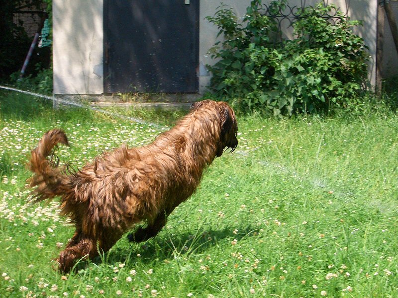 Vom Wasserstrahl aus dem Gartenschlauchwaren beide wieder begeistert, so wie schon Lilith 2004 <http://www.barnim.net/lilith/bilder/wasserspiele.html>. Lilith allein...