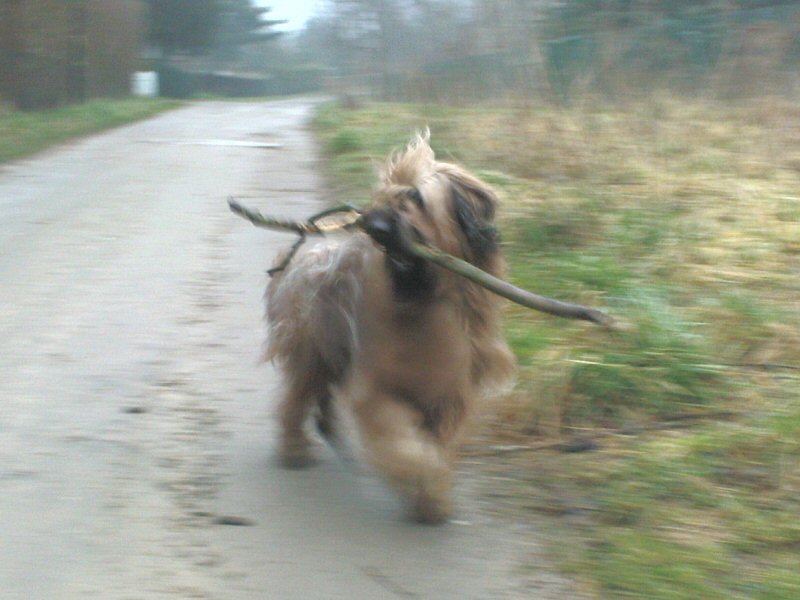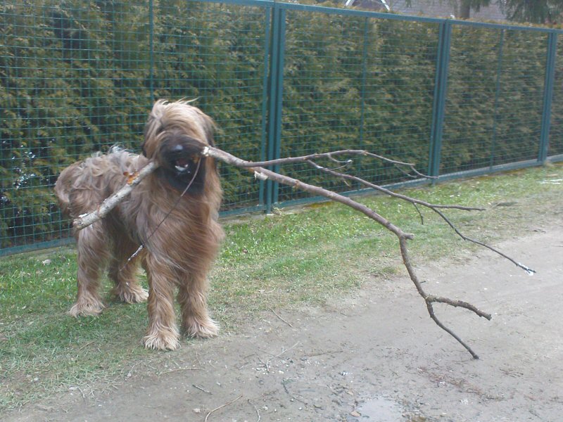 Der Sturm hat einiges Material bereitgestellt. Unsere Hunde sammeln wieder Holz für das Feuerbecken, zum klimaschädlichen Verbrennen an Sommerabenden im Garten. Das heißt, Lilith ist jetzt (meist) eine Dame, aber Anna Karenina läßt sich keinen Spaß entgehen.