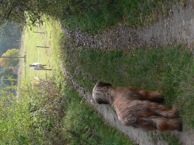 Nach vier Stunden sind beide schließlich etwas ruhiger, legen den Paßgang ein, und Lilith hängt sich in Frauchens Kniekehle.